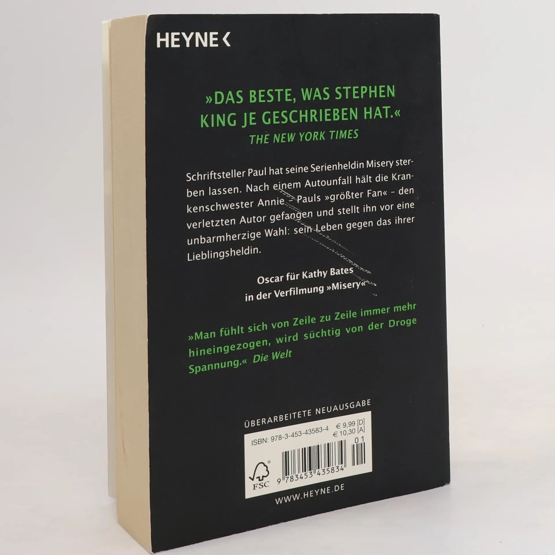 „Das Beste, was Stephen King je geschrieben hat.“ The New York Times Schriftsteller Paul hat seine Serienheldin Misery sterben lassen. Nach einem Autounfall hält die Krankenschwester Annie - Pauls „größter Fan“ - den verletzten Autor gefangen und zwingt ihn weiterzuschreiben. Oscar für Kathy Bates in der Verfilmung „Misery“. „Man fühlt sich von Zeile zu Zeile immer mehr hineingezogen, wird süchtig von der Droge Spannung.“ Die Welt