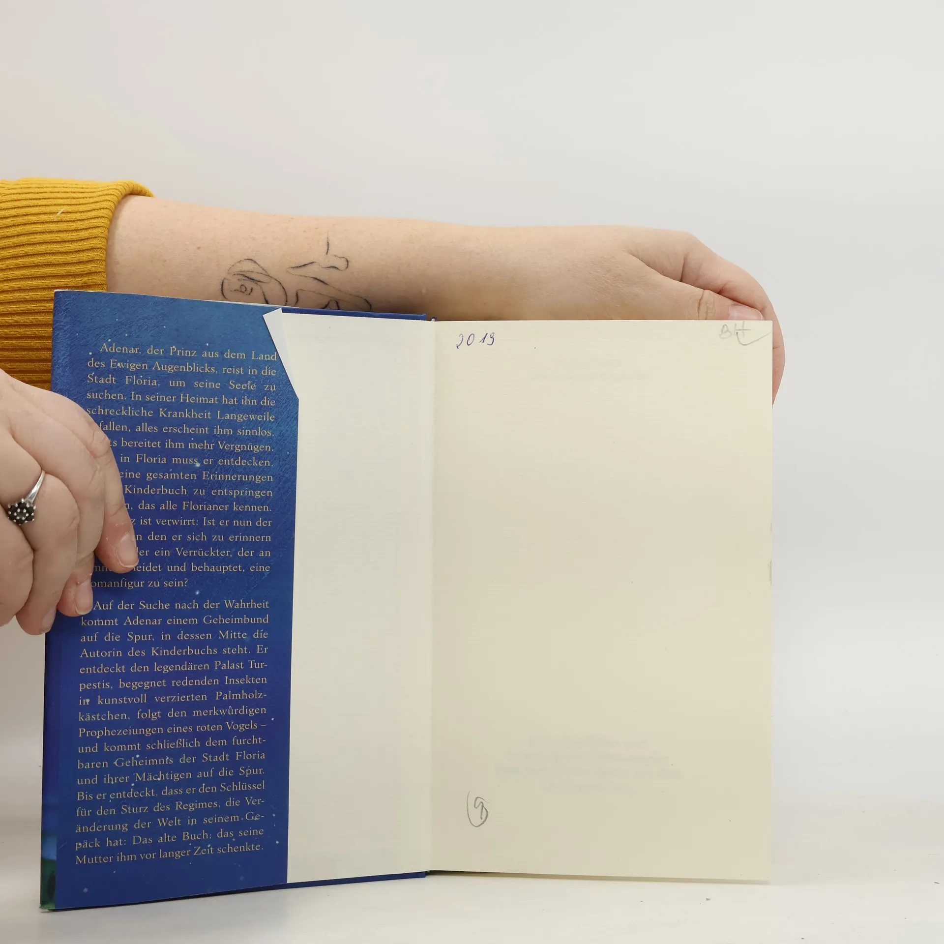 Adenar, ein Prinz aus dem Land des Ewigen Augenblicks, reist in die Stadt Floria, um seine Seele zu suchen. Ihn hat die schreckliche Krankheit Langeweile befallen, alles erscheint ihm sinnlos, nichts bereitet ihm mehr Vergnügen. Doch in Floria muss er entdecken, dass seine gesamten Erinnerungen einem Kinderbuch zu entspringen scheinen, das alle Florianer kennen. Der Prinz ist verwirrt: Ist er nun der Adenar, an den er sich zu erinnern glaubt, oder ein Verrückter, der an Amnesie leidet und behauptet, eine Romanfigur zu sein? Auf der Suche nach der Wahrheit kommt Adenar einem Geheimbund auf die Spur, in dessen Zentrum die Autorin des Kinderbuchs steht. Er entdeckt den legendären Palast Turpestis, begegnet sprechenden Insekten in kunstvoll verzierten Palmholzkästchen, folgt den merkwürdigen Prophezeiungen eines Leierschwanzes — und kommt schließlich dem furchtbaren Geheimnis der Stadt Floria und ihrer Mächtigen auf die Spur. Doch dann stellt er fest, dass er den Schlüssel für den Sturz des Regimes, die Veränderung der Welt, in seinem Gepäck hat: Das alte Buch, das seine Mutter ihm vor langer Zeit schenkte.