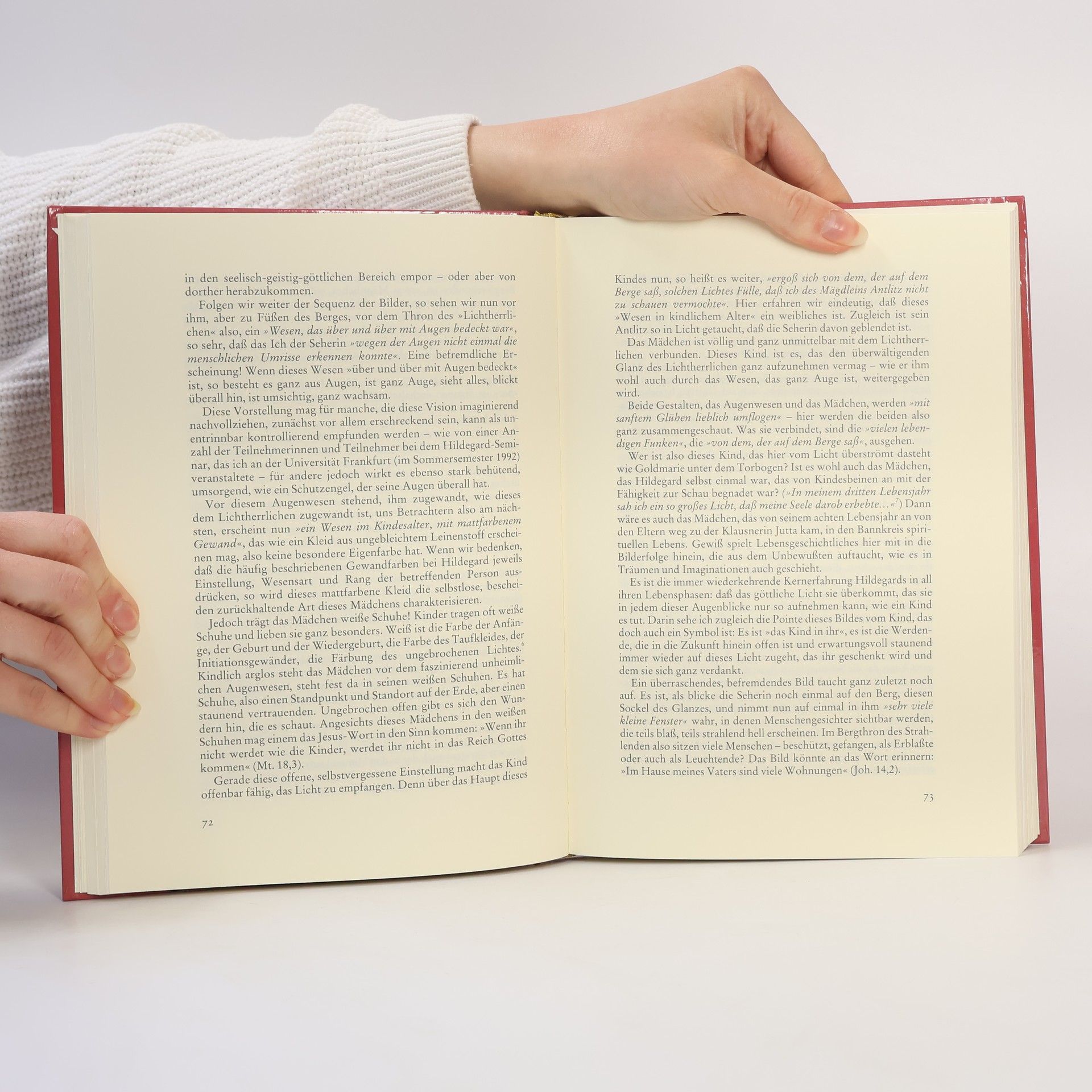 Unter Lawinen theologischer Deutung arbeitet Ingrid Riedel die ureigenste Stimme Hildegard von Bingens heraus: die Visionen und Auditionen einer Frau, die verbindet, was im Christentum immer noch getrennt ist; das, was sie zu einer Heiligen, und das, was sie zu einer 'Hexe' macht – religiöse Ergriffenheit und Naturwissenschaft, das präzise Wissen einer Heilerin und mystische Schau. Hildegards Visionen der Einheit von Kosmos und Mensch, von göttlicher Weisheit und von ökologischer Krise sind in der Gegenwart von ungewöhnlicher Aktualität, weil die Naturwissenschaft heute belegt, was sie damals intuitiv erschaute.