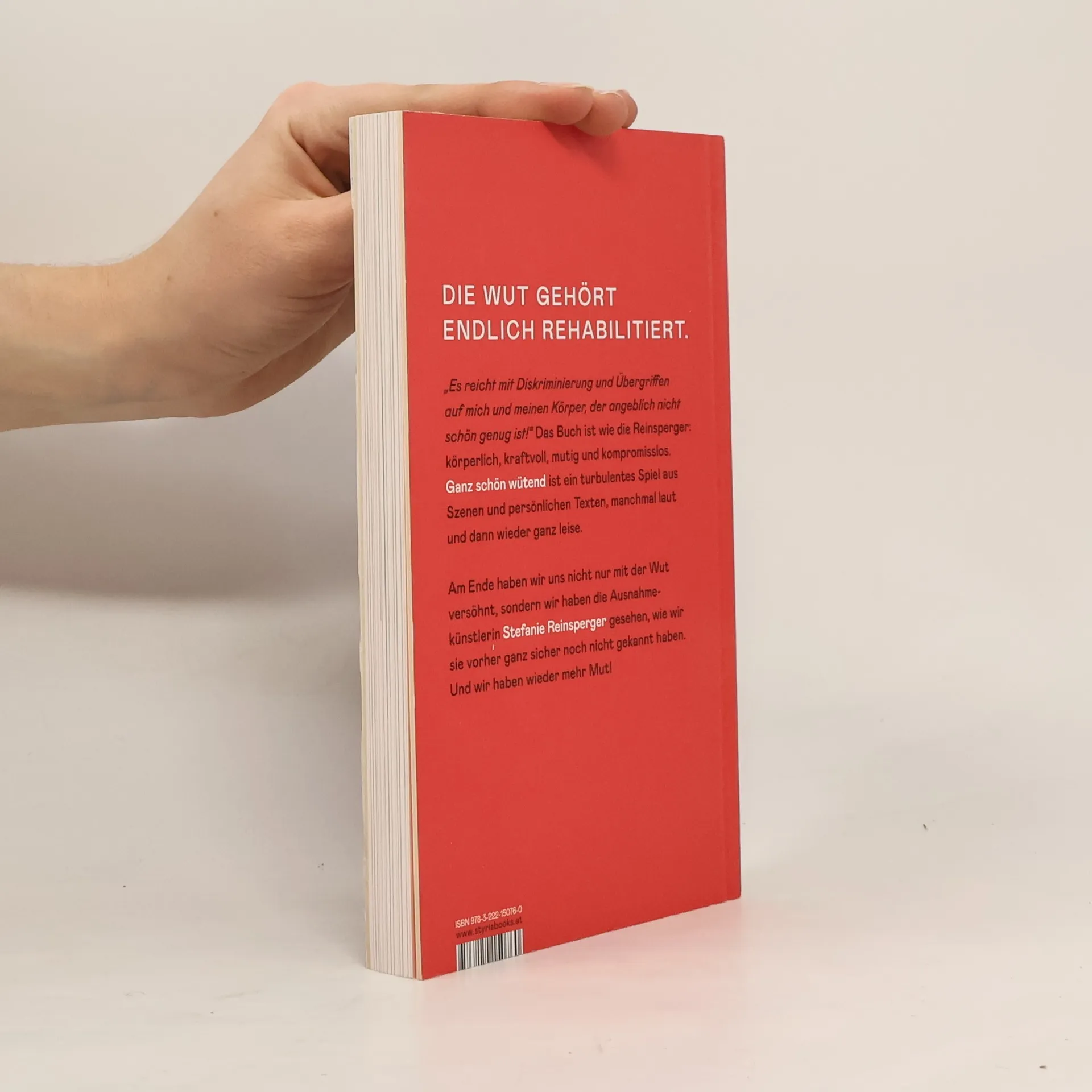 Die Ausnahmeschauspielerin Stefanie Reinsperger mag schwierige Themen und forscht in ihren eigenen Abgründen nach Gefühlen – ihr Lieblingsgefühl ist die Wut. Die Wut gehört endlich rehabilitiert und an die Öffentlichkeit. „Es reicht mit Diskriminierung und Übergriffen auf mich und meinen Körper, der angeblich nicht schön genug ist!“ Das Buch ist wie die Reinsperger: körperlich kraftvoll, mutig und kompromisslos, es ist ein turbulentes Spiel aus Szenen, kurzen persönlichen Texten, ein Spiel von Tempo und Rhythmus. Und am Ende haben wir uns nicht nur mit der Wut versöhnt, sondern haben Stefanie Reinsperger, ihre Haltung und ihre Arbeit gesehen, wie wir sie vorher ganz sicher noch nicht gekannt haben.
