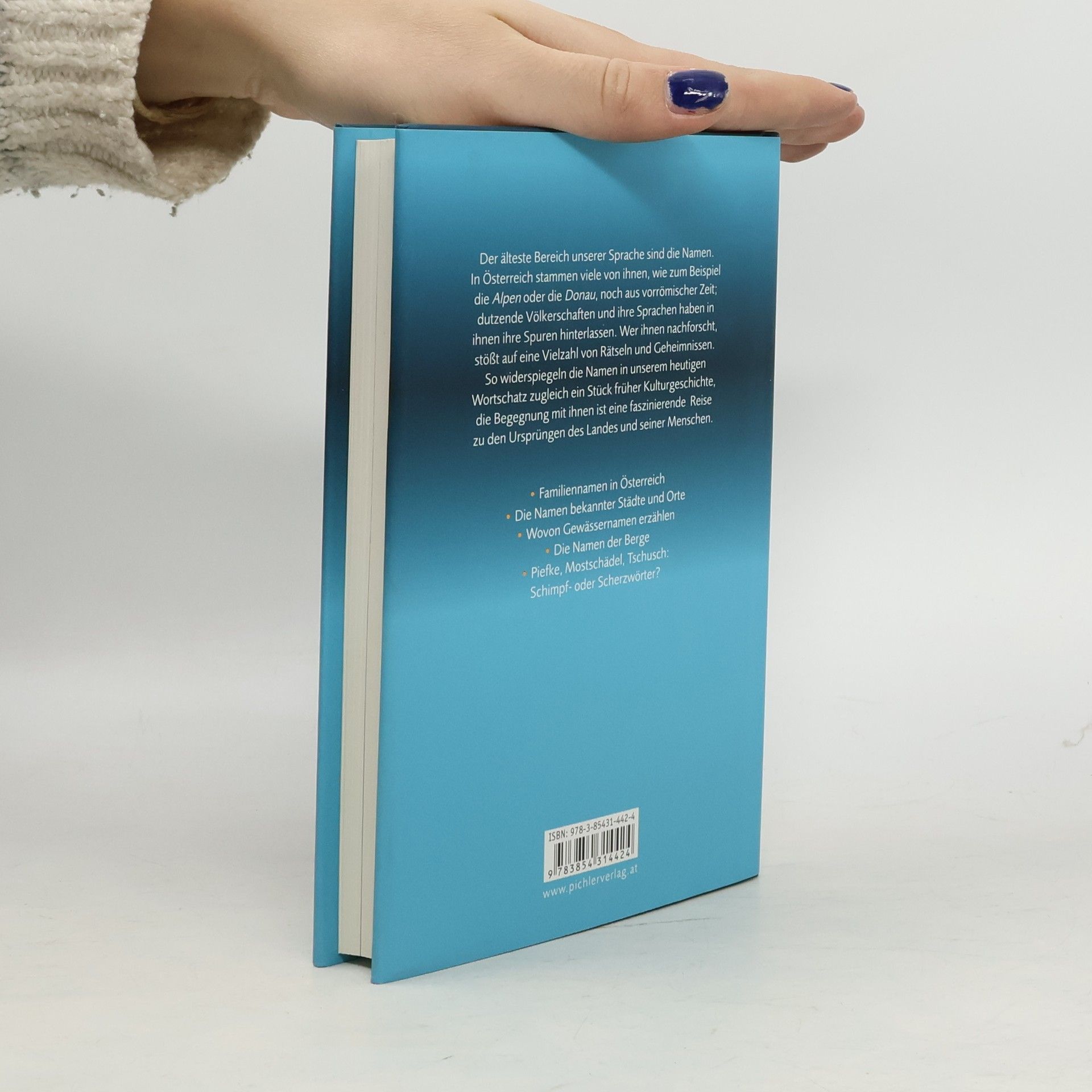 Als ältestes kulturelles Erbe betrachten wir gemeinhin historische Bauten oder Werke der Musik, Literatur und bildenden Kunst. Dabei vergessen wir völlig, dass unsere Sprache, ohne die solches Schaffen gar nicht möglich wäre, noch viel älter ist. Und der älteste Bereich unserer Sprache sind die Namen. In Österreich stammen viele von ihnen, wie zum Beispiel die Alpen oder die Donau, aus vorrömischer Zeit; dutzende Völkerschaften und ihre Sprachen haben in ihnen ihre Spur hinterlassen. So widerspiegeln Namen in unserem heutigen Wortschatz zugleich ein Stück früher Kulturgeschichte. Wer ihnen nachforscht, begibt sich oft auf eine spannende Reise in die Vergangenheit – auch der der eigenen Familie. Das Buch des Sprachwissenschaftlers Heinz Pohl mag als Cicerone durch die Welt der Namen in Österreich dienen. Sie erfahren hier Interessantes und Wissenswertes zur Herkunft und Bedeutung der Namen unserer Bundesländer, bekanntesten Städte, Gewässer, Berge und Landschaften. Ein eigenes Kapitel ist den Familiennamen gewidmet; ein anderes den Namen unserer Nachbarn. Typische Traditionen und Speisen kommen natürlich auch nicht zu kurz. Spannende, unterhaltsame Geschichten rund um die Herausbildung unsrer österreichischen Identität, eine faszinierende Reise zu den Ursprüngen unserer kulturellen Identität. Die faszinierenden Geheimnisse der österreichischen Namen Kulturgeschichte einmal anders: Namen als „Herzstücke“ österreichischer Identität Auf den Spuren der wichtigsten österreichischen Familien-, Berg- und Gewässer-, Städte- und Ortsnamen