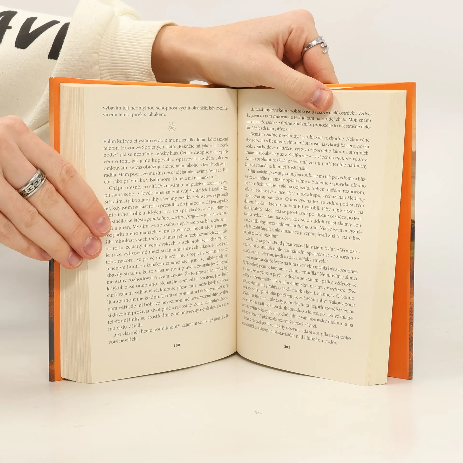 Americká spisovatelka se kultivovanou formou a s velkým osobním zaujetím dělí se čtenáři o své dojmy, zážitky a zkušenosti z několikaletého pobytu v italském Toskánsku, kde našla svůj druhý domov. Kniha vzpomínek a vyprávění vznikla na základě deníku z prvních pěti let autorčina pobytu v Toskánsku, na opuštěné vesnické usedlosti, kterou zakoupila a snažila se opravit a zmodernizovat, aniž by narušila její kouzlo. Prostě a s nadšením popisuje půvab toskánské krajiny, náročnou práci na obnově rozpadajícího se statku, i setkání s místními vesničany a nahlédnutí do jejich osudů. Značnou pozornost věnovala barvitému popisu místních historických památek a vyprávění o základech i zvláštnostech toskánské kuchyně, které proložila asi padesáti originálními místními recepty.