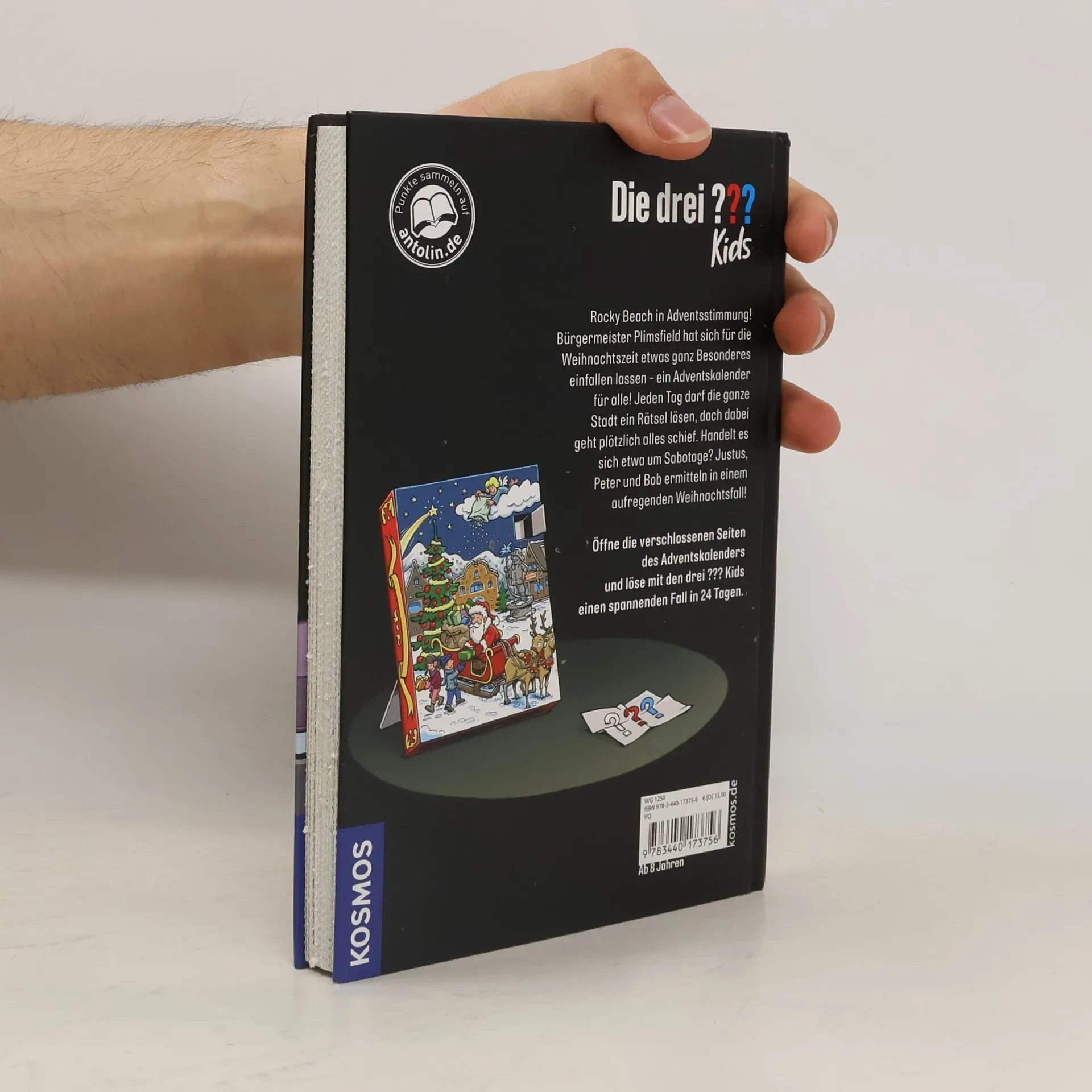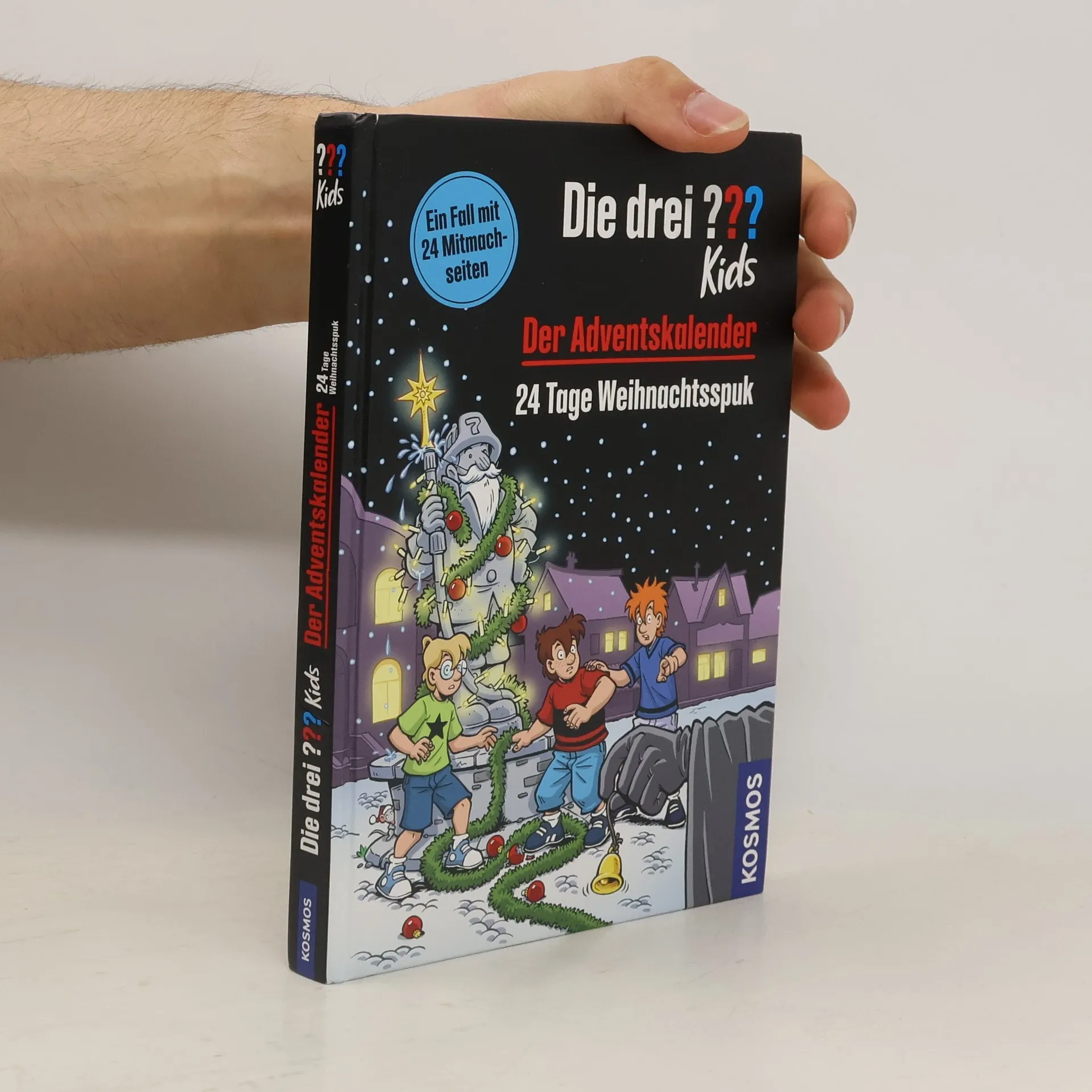 Ein ganz besonderer Adventskalender: Tag für Tag die verschlossenen Seiten öffnen und Justus, Peter und Bob durch ein Weihnachtsabenteuer begleiten. Neben dem Adventskrimi in 24 verschlossenen Kapiteln, weihnachtlichen Rätseln, Rezepten und Bastelspaß ist ein „Die drei ??? Kids“-Stickerbogen enthalten. Der Bürgermeister von Rocky hat sich eine besondere Weihnachtsaktion ausgedacht: einen Adventskalender, der alle Bewohner auf eine spannende Rätsel-Schitzeljagd schickt. Doch dann passieren merkwürdige Dinge und die drei ??? stecken mitten in ihrem nächsten Fall. Justus, Peter und Bob sind beste Freunde und Detektive. Zusammen haben die drei ??? schon viele knifflige Fälle gelöst.