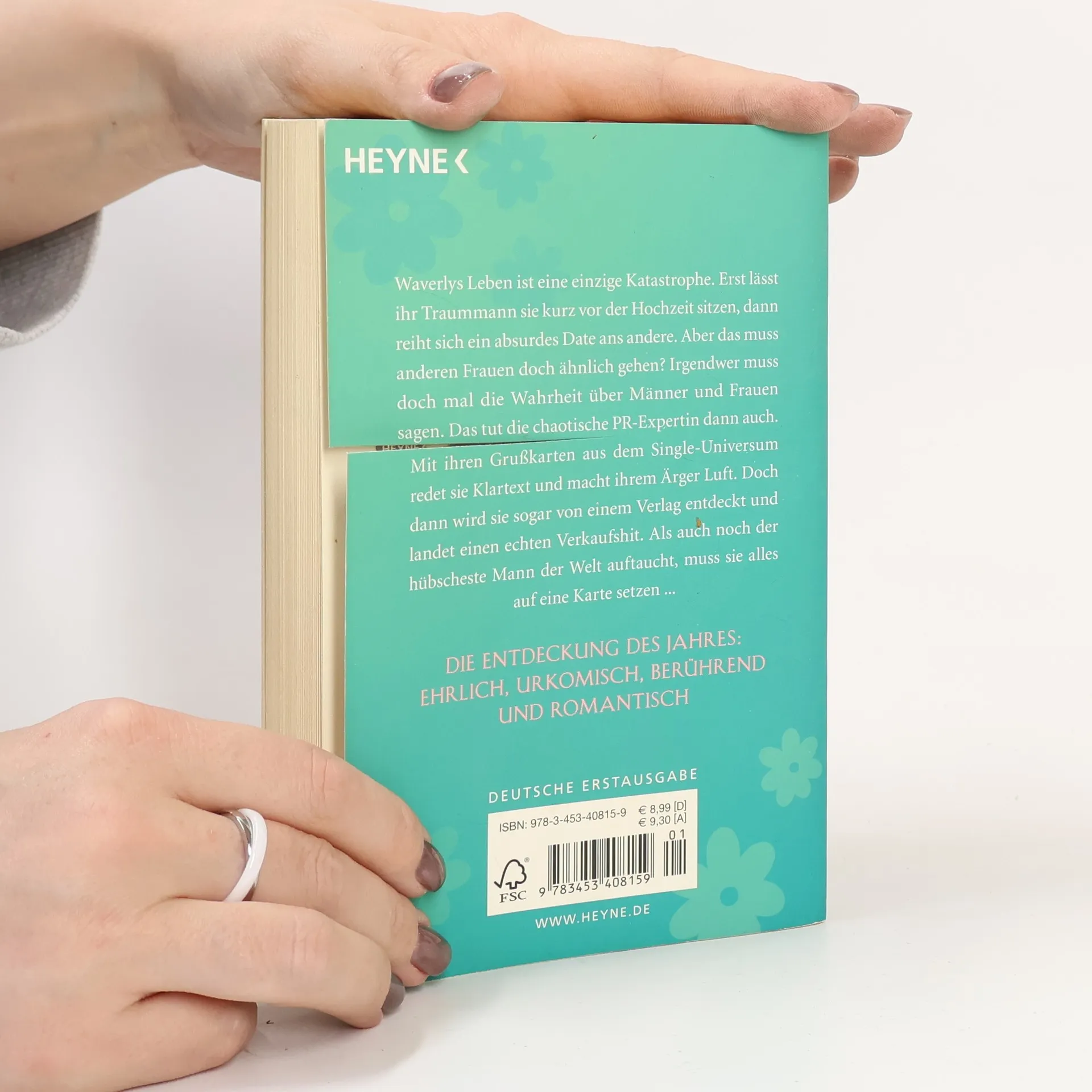 Freche Wahrheiten aus dem Single-Universum Waverlys Leben ist eine Katastrophe. Erst lässt ihr Traummann sie kurz vor der Hochzeit sitzen, dann reiht sich ein absurdes Date ans andere. Aber das muss anderen Frauen doch ähnlich gehen? Irgendwer muss doch mal die Wahrheit über Männer und Frauen sagen. Das tut die chaotische PR-Expertin dann auch. Mit ihren Grußkarten aus dem Single-Universum redet sie Klartext und wird schließlich sogar von einem Verlag entdeckt. Dann taucht plötzlich auch noch der hübscheste Mann der Welt auf, und sie muss alles auf eine Karte setzen.