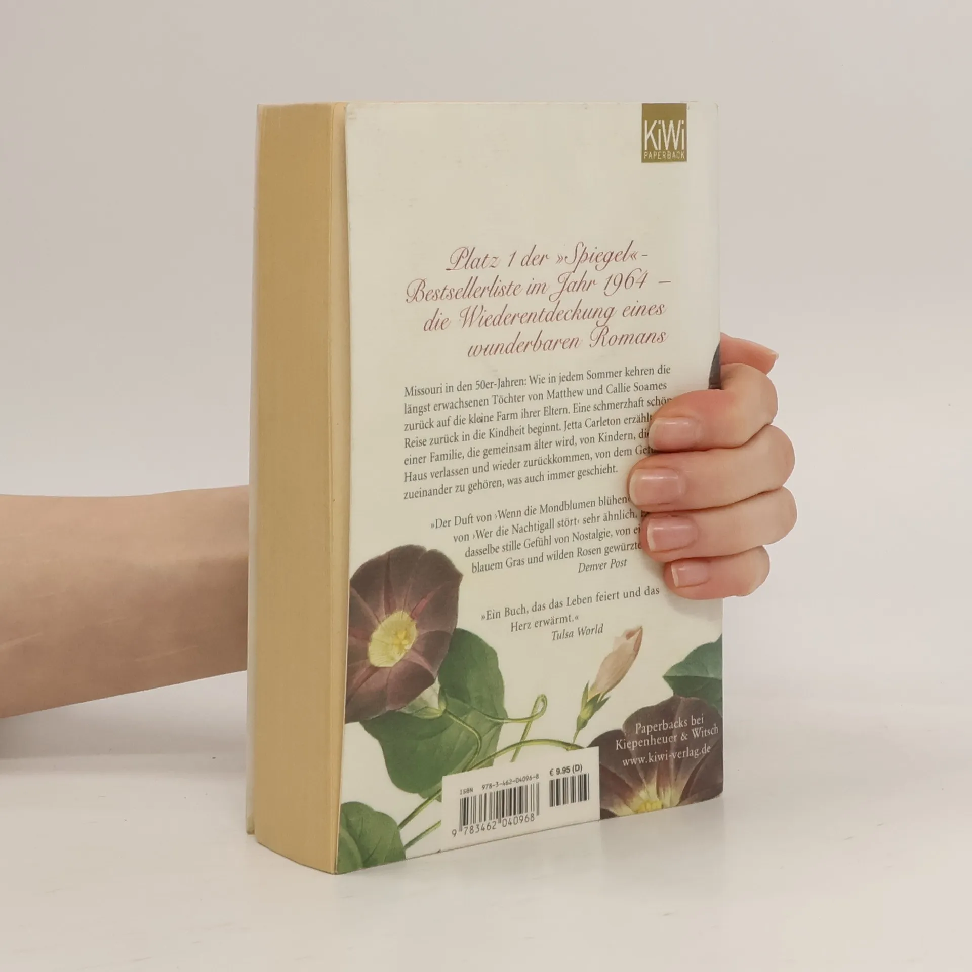 Ein Sommer in den 50er-Jahren: Wie in jedem Jahr kehren die längst erwachsenen Töchter von Matthew und Callie Soames für zwei Wochen zurück auf die Farm ihrer Eltern in Missouri – eine schmerzhaft schöne Reise zurück in die Kindheit. Die Geschichte beginnt mit den jungen Eheleuten Matthew und Callie, die mit nichts als einem Maultier, einem Federbett und einem Teekessel einen Hausstand gründen und vier Töchter bekommen, und entwickelt sich zu einem vielschichtigen Drama über Geheimnisse, die die Familienmitglieder voneinander trennen, und Erfahrungen, die sie für immer verbinden: Mathy, die Rebellin, die mit einem jungen Piloten durchbrennt, Leonie, die pflichtbewusste Tochter, die das Glück an sich vorbeiziehen zu lassen scheint, Jessica, die das College sausen lässt und den falschen Mann heiratet, Matthew, der Vater, der sich erst als Lehrer und später als Schuldirektor von Abiturientinnen in Versuchung geführt sieht, und die Mutter Callie, die die Familie zusammenhält und einen Moment erlebt, den sie sich nie verzeiht. Wenn die Mondblumen blühen ist die Geschichte einer Familie, die gemeinsam älter wird, über Kinder, die das Haus verlassen und wieder zurückkommen, über Mut, Eitelkeit, Verzicht und neue Chancen und das Gefühl, zueinander zu gehören, was auch immer geschieht.