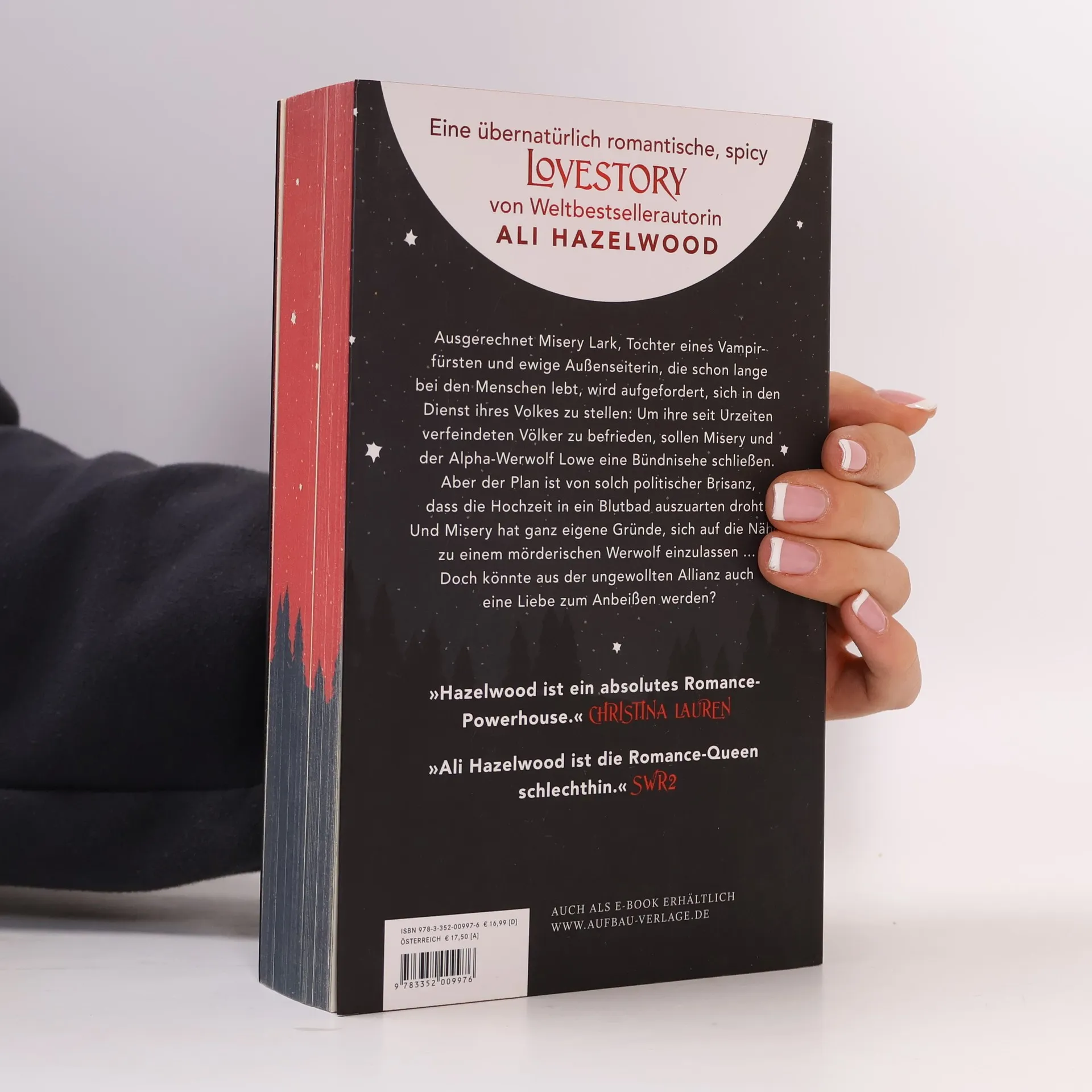 Mit wunderschönem farbigem Buchschnitt – limitiert auf die erste Auflage. Misery Lark, Tochter eines mächtigen Vampirfürsten, ist eine Außenseiterin, die unter den Menschen ein anonymes Dasein führt. Plötzlich soll sie sich jedoch einer brisanten Bündnisehe mit einem Werwolf, dem ewigen Feind der Vampire, hingeben. Ihr zukünftiger Ehemann, der Alpha Lowe Moreland, ist ebenso erbarmungslos wie unberechenbar, regiert jedoch mit Autorität und einem Sinn für Gerechtigkeit, was ihn von den Vampiren unterscheidet. Misery spürt, dass er ihr nicht traut – und das aus gutem Grund, denn sie hat eigene Motive für das Bündnis und ist bereit, alles zu opfern, selbst ein Leben unter Wölfen. Doch sie hat nicht mit der überwältigenden Kraft der Liebe gerechnet, die alle Unterschiede überwindet. Der neue Bestseller von Ali Hazelwood erzählt von einer Liebe zwischen zwei Welten: Forbidden Love, Fated Mates, Enemies to Lovers und mehr in einer übernatürlich romantischen, prickelnd heißen Lovestory aus einem neuen Teil des Aliversums. »Hazelwood ist ein absolutes Romance-Powerhouse.« – Christina Lauren. »Leidenschaftlich und witzig – Ali Hazelwoods Debüt im Paranormalen führt uns in eine faszinierende Welt.« – Nalini Singh, New-York-Times-Bestsellerautorin.