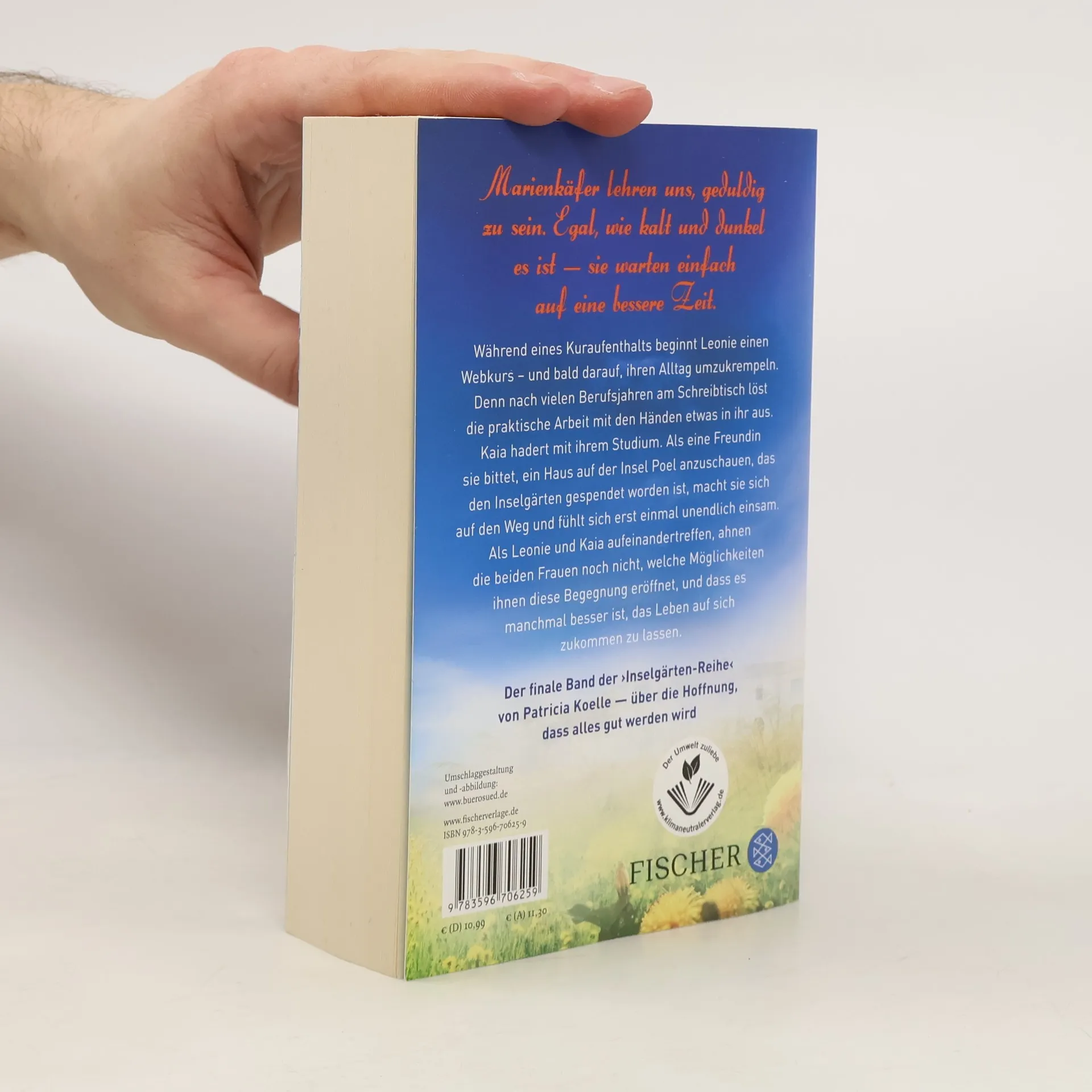 »Marienkäfer lehren uns, geduldig zu sein. Egal, wie kalt und dunkel es ist – sie warten einfach auf eine bessere Zeit.« Während eines Kuraufenthalts beginnt Leonie einen Webkurs – und bald darauf, ihren Alltag umzukrempeln. Denn nach vielen beruflichen Jahren am Schreibtisch löst die praktische Arbeit mit den Händen etwas in ihr aus. Kaia hadert mit ihrem Studium. Ihre Freundin Remy Kreyhenibbe möchte sie aufheitern und bittet sie darum, ein Haus auf der Insel Poel anzuschauen, das den Inselgärten gespendet worden ist. Kaia macht sich auf den Weg und fühlt sich erst einmal unendlich einsam. Als Leonie und Kaia aufeinandertreffen, ahnen die beiden Frauen noch nicht, welche Möglichkeiten ihnen diese Begegnung eröffnet, und dass es manchmal besser ist, das Leben auf sich zukommen zu lassen. Der finale Band der Inselgärten-Reihe von Patricia Koelle – über die Hoffnung, dass alles gut werden wird Dieses Buch ist ein in sich geschlossener Roman, den man eigenständig lesen kann. Seien Sie gespannt! Im Herbst 2022 beginnt die neue Reihe von Patricia Koelle: am 28.09.2022 erscheint Band 1 ihrer Sehnsuchtswald-Reihe »Das Licht in den Bäumen«.
