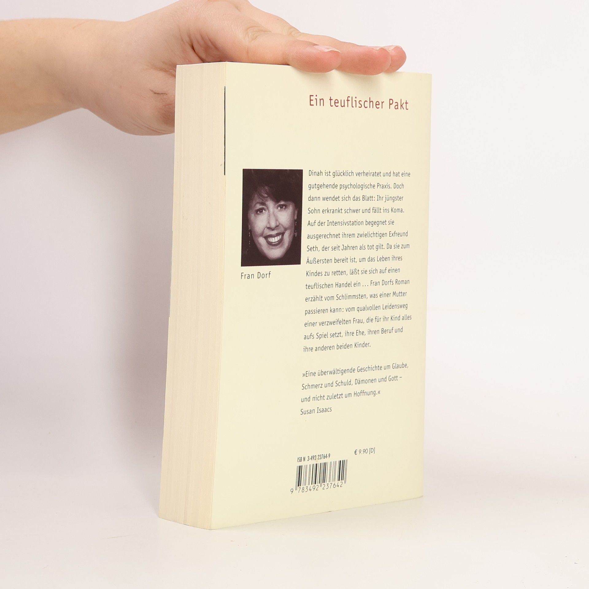 Dinah ist glücklich verheiratet und hat eine gutgehende psychologische Praxis. Doch dann wendet sich das Blatt: Ihr jüngster Sohn erkrankt schwer und fällt ins Koma. Auf der Intensivstation begegnet sie ausgerechnet ihrem zwielichtigen Exfreund Seth, der seit Jahren als tot gilt. Da sie zum Äußersten bereit ist, um das Leben ihres Kindes zu retten, läßt sie sich auf einen teuflischen Handel ein ... Fran Dorfs Roman erzählt vom Schlimmsten, was einer Mutter passieren kann: vom qualvollen Leidensweg einer verzweifelten Frau, die für ihr Kind alles aufs Spiel setzt, ihre Ehe, ihren Beruf und ihre anderen beiden Kinder.