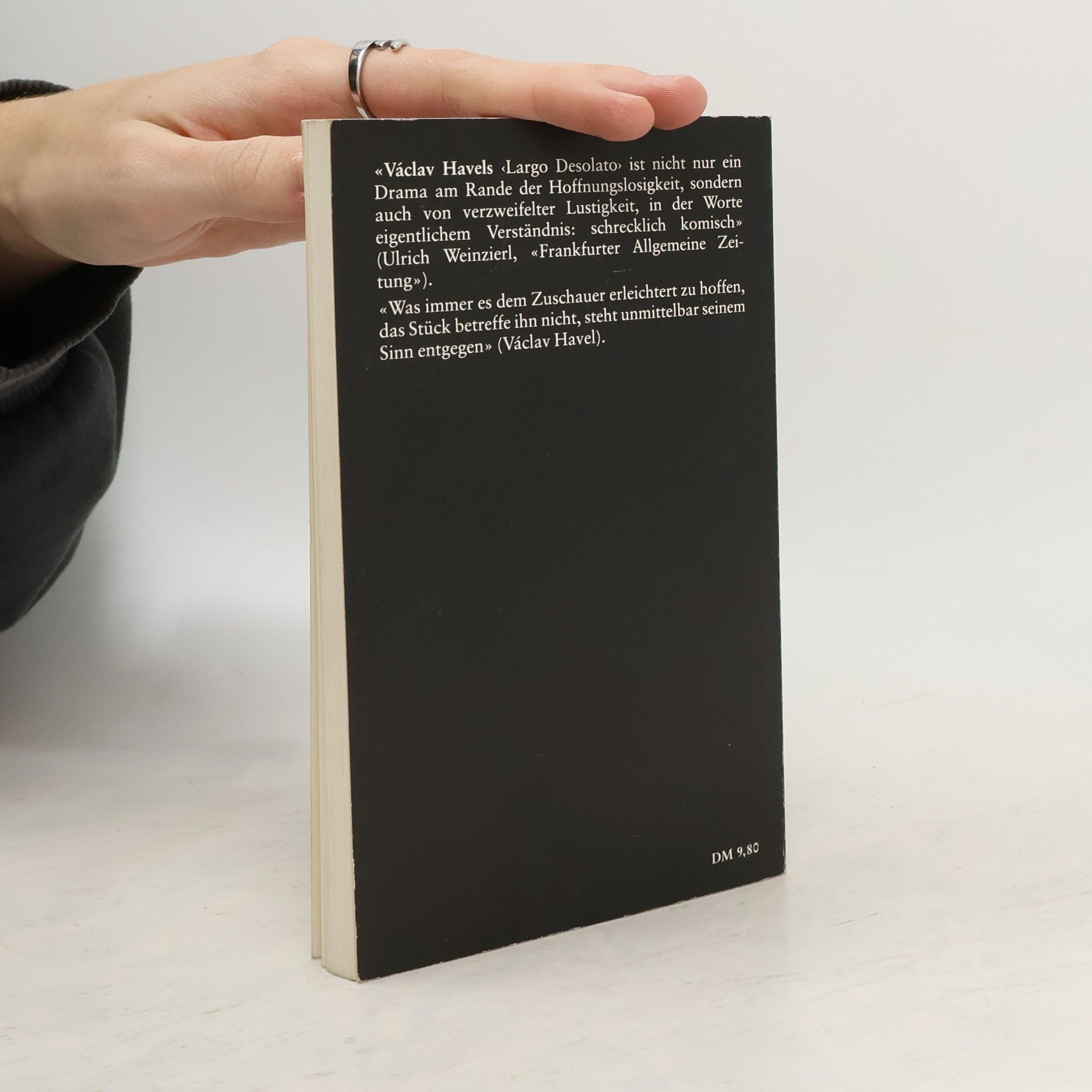 Largo Desolato ist ein abendfüllendes Theaterstück - das erste, das Václav Havel seit seiner Haftentlassung 1983 geschrieben hat. Es läßt sich nicht verkürzen zum Dokument über ein bestimmtes Milieu oder Gesellschaftssystem, läßt sich auch nicht auf eine bestimmte These reduzieren: «In diesem Stück gibte es weder positive noch negative Personen. Es gibt, wenn man so sagen kann, paradoxe Personen, Bestandteile, Opfer und Schöpfer der paradoxen Welt, einer Welt, in der es alle ein wenig gut meinen und alle ein wenig recht haben - und dabei liegen sie alle daneben, verderben und verschlechtern alles. Alle sind sie auf ihre Weise tragisch und zugleich auf ihre Weise lächerlich.» (Václav Havel)