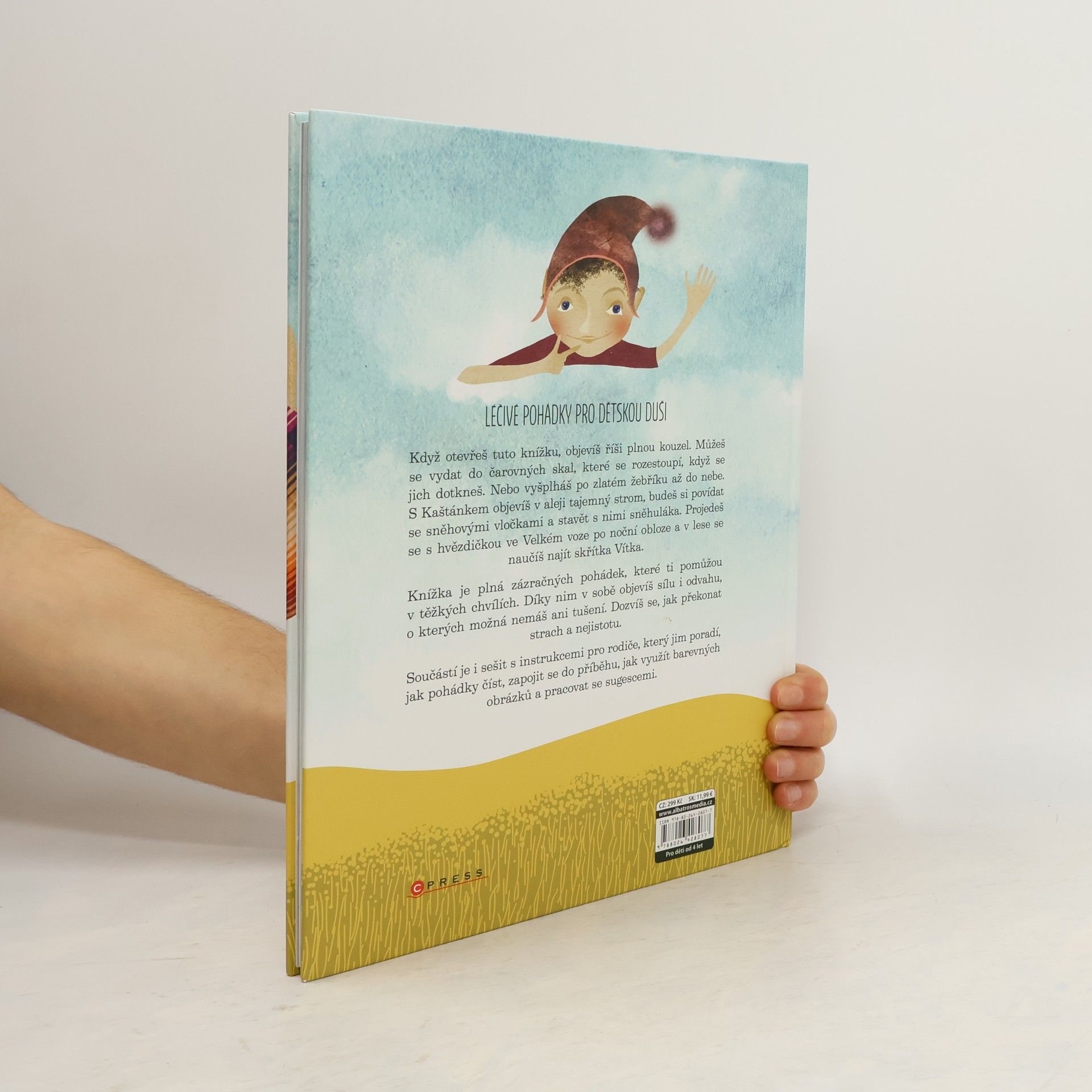 Když otevřeš tuto knížku, objevíš říši plnou kouzel. Můžeš se vydat do čarovných skal, které se rozestoupí, když se jich dotkneš. Nebo vyšplháš po zlatém žebříku až do nebe. S Kaštánkem objevíš v aleji tajemný strom, budeš si povídat se sněhovými vločkami a stavět s nimi sněhuláka. Taky se projedeš s Hvězdičkou ve Velkém voze po noční obloze a v lese se naučíš najít skřítka Vítka. Tato knížka je plná zázračných pohádek, které ti můžou pomoci v těžkých chvílích.