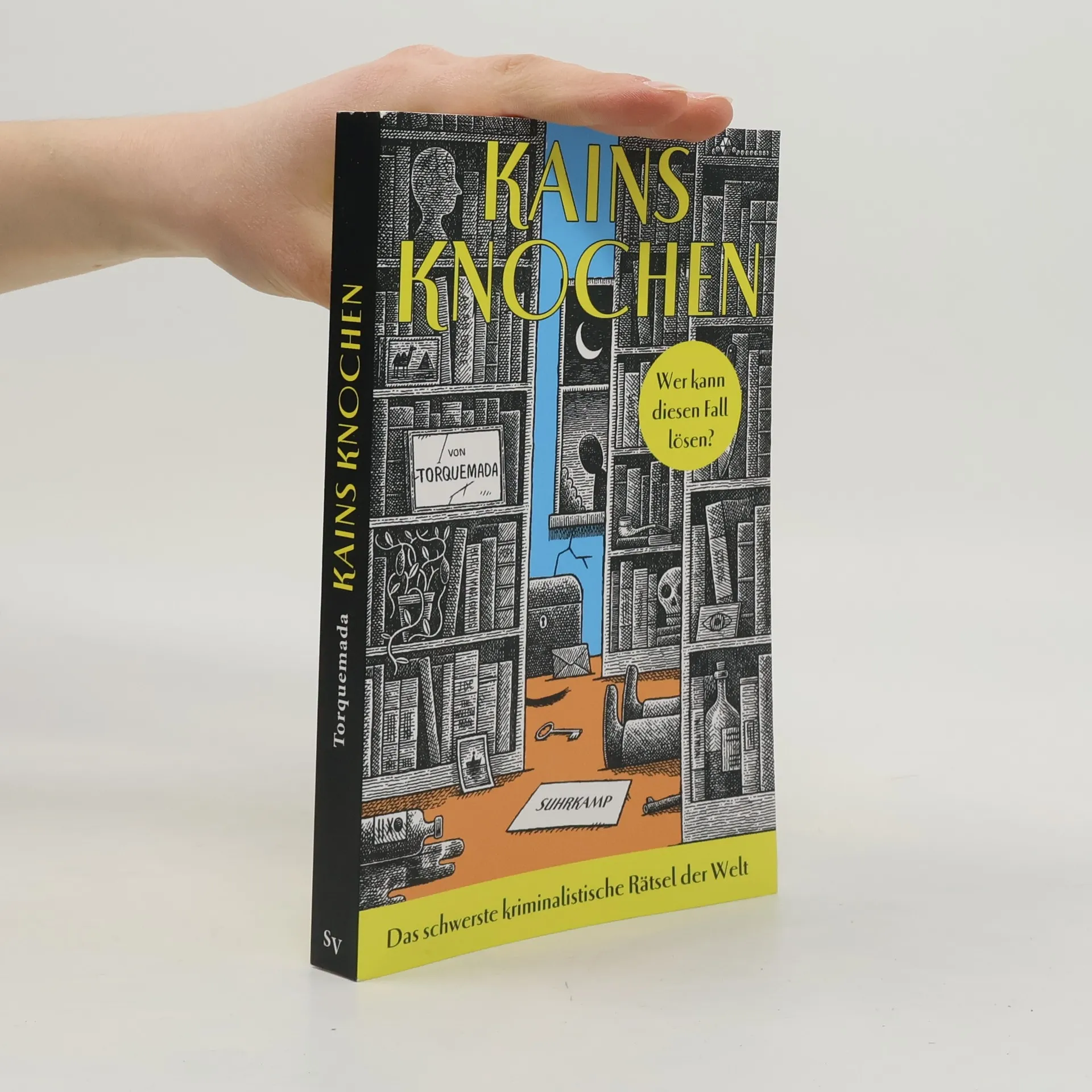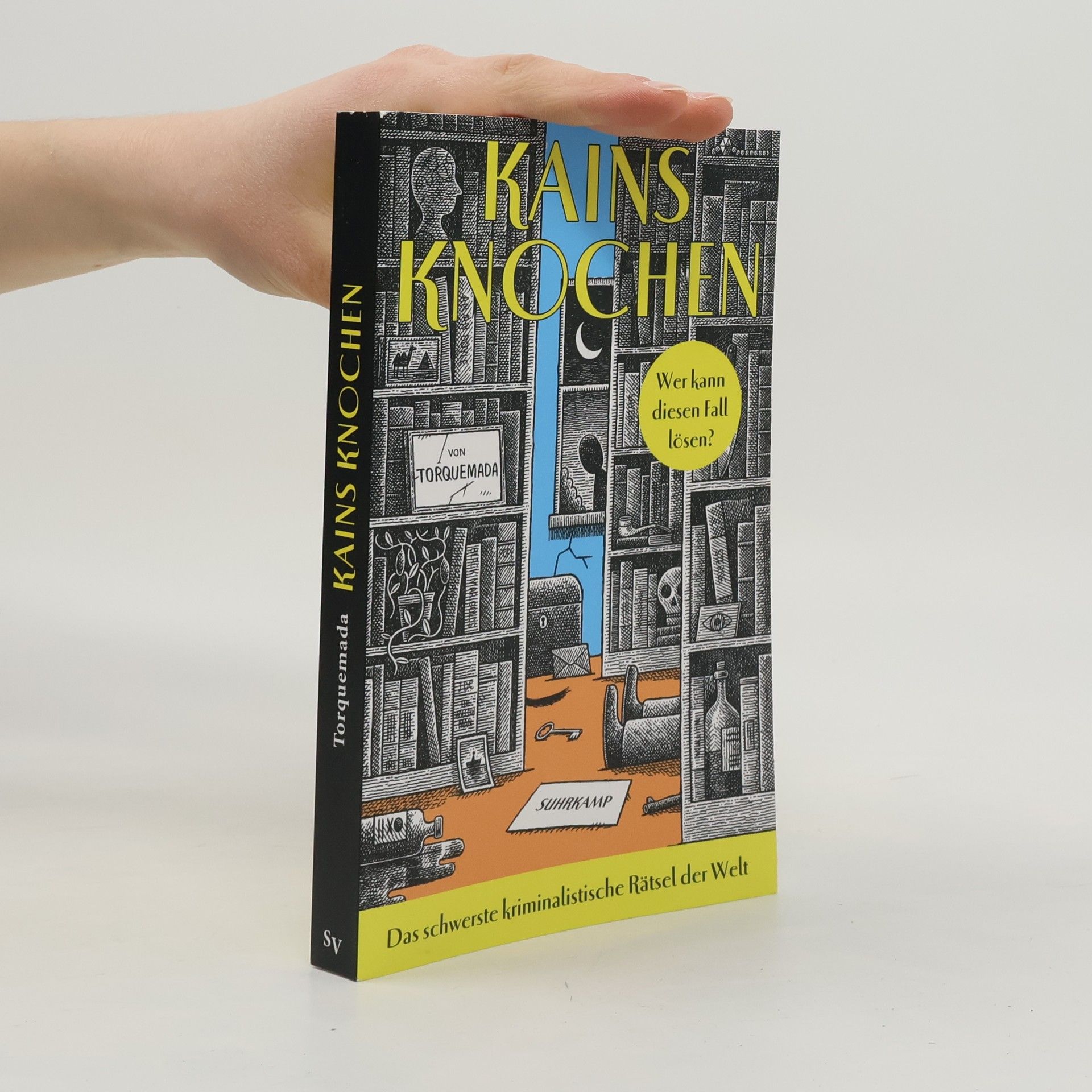 Kains Knochen ist ein hundertseitiger Krimi, in dem sechs Menschen sterben. Um herauszufinden, wer sie sind und wer sie getötet hat, muss der Leser die Seiten des Buches neu anordnen. Es gibt Millionen von Möglichkeiten – aber nur eine richtige Lösung. Bis heute haben drei Personen sie gefunden. 1934 schreibt der Kreuzworträtselautor des Observer, Edward Powys Mathers, unter seinem Pseudonym Torquemada einen einzigartigen Roman mit dem Titel Kains Knochen – der Titel bezieht sich auf die erste dokumentierte Mordwaffe. Es ist nicht nur ein Kriminalroman, sondern auch eines der schwierigsten Worträtsel, die je veröffentlicht wurden. Es wurde von nur zwei Menschen gelöst, deren Namen zwar enthüllt wurden, deren Lösung jedoch ein Geheimnis blieb. 2017 gelang es dem Laurence Sterne Trust nach monatelangen Nachforschungen und mit viel Glück, das Geheimnis von Kains Knochen zu lüften. Er behielt es für sich, brachte eine Neuausgabe des Buches heraus und lobte einen Preis in Höhe von £ 1.000 für die Lösung des Rätsels aus. Viele haben sich daran versucht, doch es gab nur eine richtige Einsendung … Mit Erscheinen der deutschsprachigen Ausgabe schreibt der Suhrkamp Verlag das Gewinnspiel neu aus.