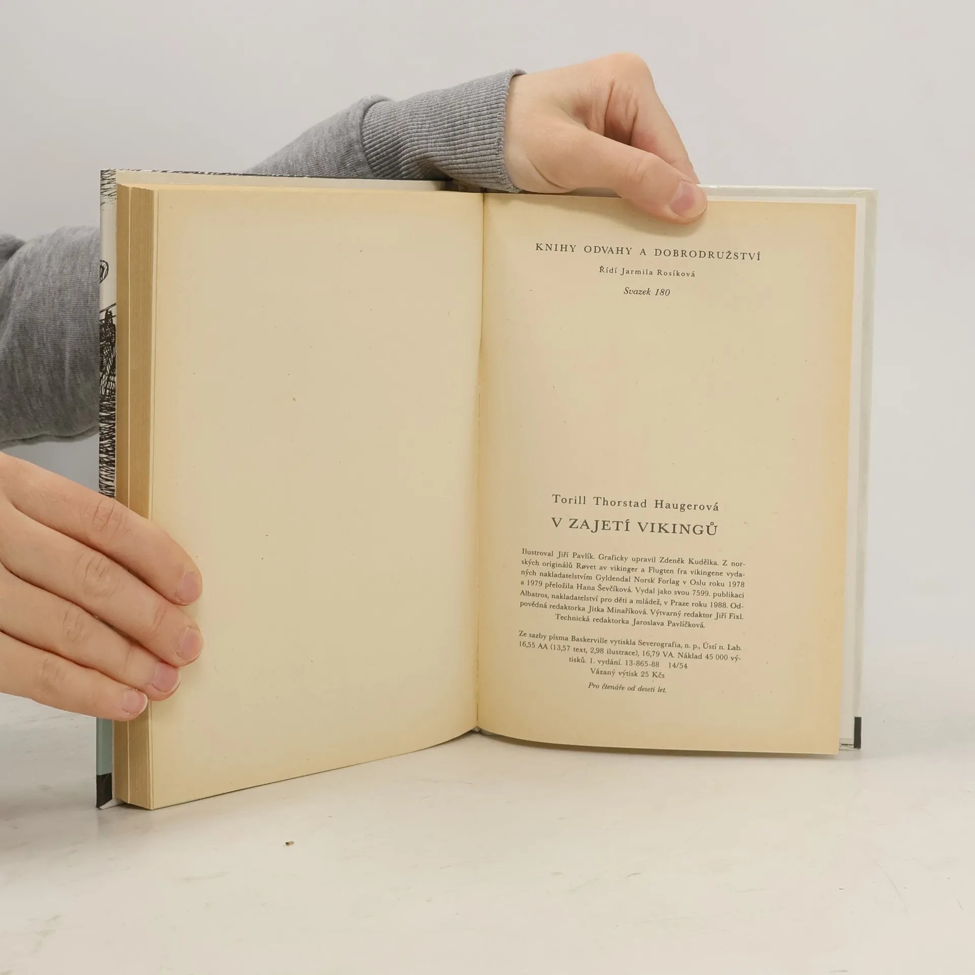 Historický román mladé norské autorky Torill Haugerové V zajetí vikingů (jde vlastně o dvě knížky dějově na sebe navazující, které vydáváme v jednom svazku) nás zavádí do minulosti hodně vzdálené - skoro o tisíc let nazpět, do 10. století našeho letopočtu. Sourozenci Patrik a Sunnivažiji se svými rodiči a mladšími bratříčky i sestřičkami v rodné irské vesnici život plný drobných dětských zážitků a her a jen z doslechu se dovídají o postrachu posledních let – o loupeživých a krutých nájezdech výbojných vikingů. Brzy však zažijí podobný útok na vlastní kůži. Vikingové vypálí jejich rodnou vesnici a oba sourozence odvezou do zajetí do Norska. V této cizí neznámé zemi s drsným podnebím a nesrozumitelnou řečí dostanou Patrik a Sunniva nová jména – Reim a Tíra – a stanou se otroky na dvoře mocného jarla Hakona. Život v otroctví je tvrdý a krutý, ale oba sourozenci v sobě přes své mládí naleznou dost vnitřní síly, aby se s ním dokázali vyrovnat, a navíc postupem času zjišťují, že dobří lidé žijí všude. I tady nacházejí přátele a ochránce, kteří se jim v rámci svých možností snaží ulehčit tvrdý osud. Ale stesk po rodném zeleném ostrově v obou dětech zůstává. A nikdy nepřestávají věřit, že se jednou přece jen vrátí domů... 13-865-88