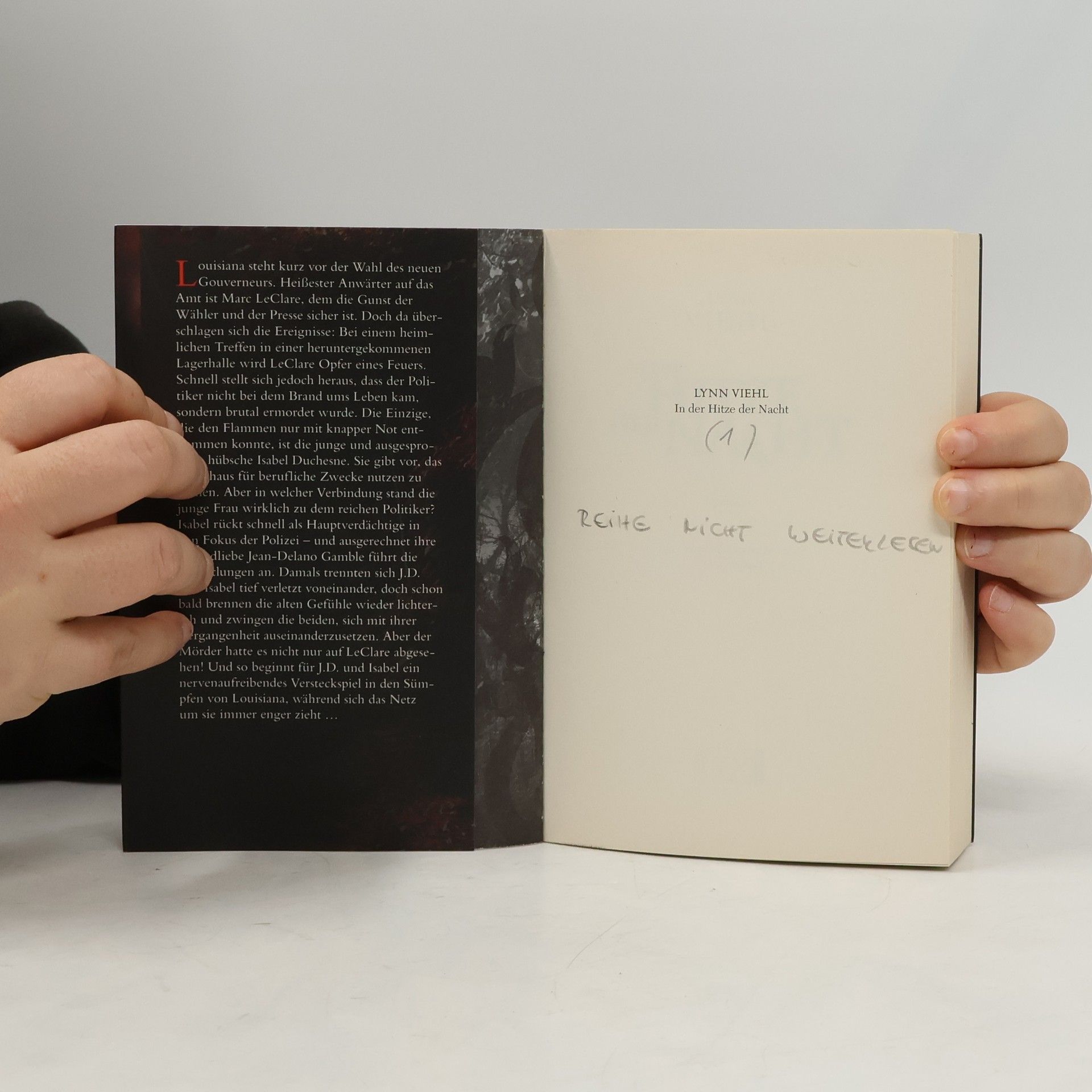 Der Kreole Marc LeClare ist der heißeste Kandidat im Wahlkampf um das Amt des Gouverneurs von Louisiana. Als er bei einem Brand in einem leeren Lagerhaus ums Leben kommt, fällt der Verdacht auf Isobel Duchesne, der einzigen Überlebenden des Feuers. Der Polizist Jean-Delano Gamble übernimmt die Ermittlungen in dem Fall und verhört Isobel. Das brisante an der Sache is: J. D. und Isobel waren einst ein Liebespaar, das durch unglückliche Umstände getrennt wurde. Als sie einander nun wieder begegnen, lodern die Gefühle erneut hoch. Ein Wettlauf gegen die Zeit beginnt, denn ein Unbekannter hat es auf Isobels Leben abgesehen.
