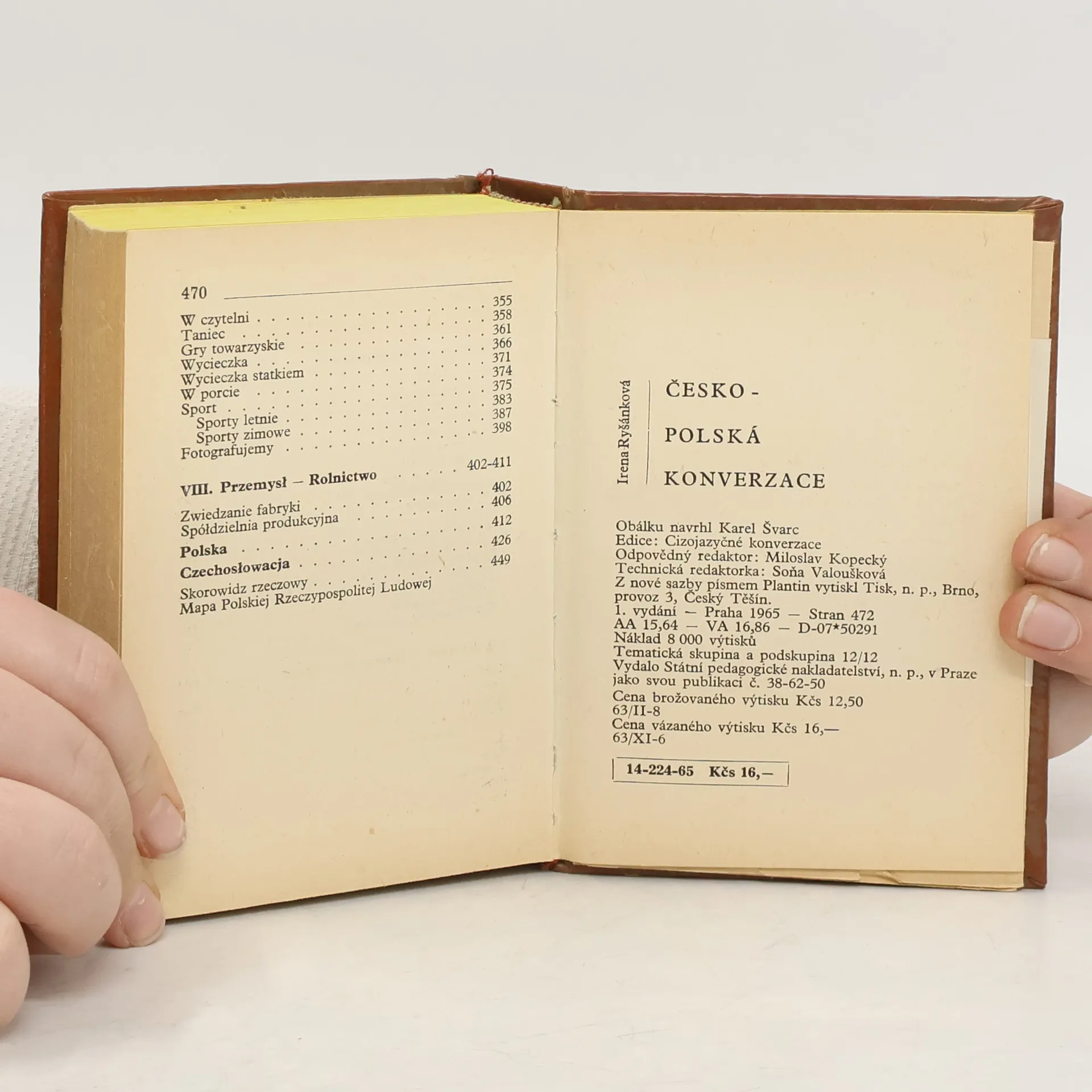 ROZMÓWKI CZESKO-POLSKIE ČESKO-POLSKÁ KONVERZACE Konverzační příručka rozdělená do 8 tematických částí (Všeobecná část, Cestování, Hotel - Restaurace, Nákupy, Lékařská pomoc, Pošta - Dopisování, Kultura - Zábava - Sport, Průmysl - Zemědělství). Závěr publikace se věnuje údajům o Polsku a Československu (aktuálním v době vydání).