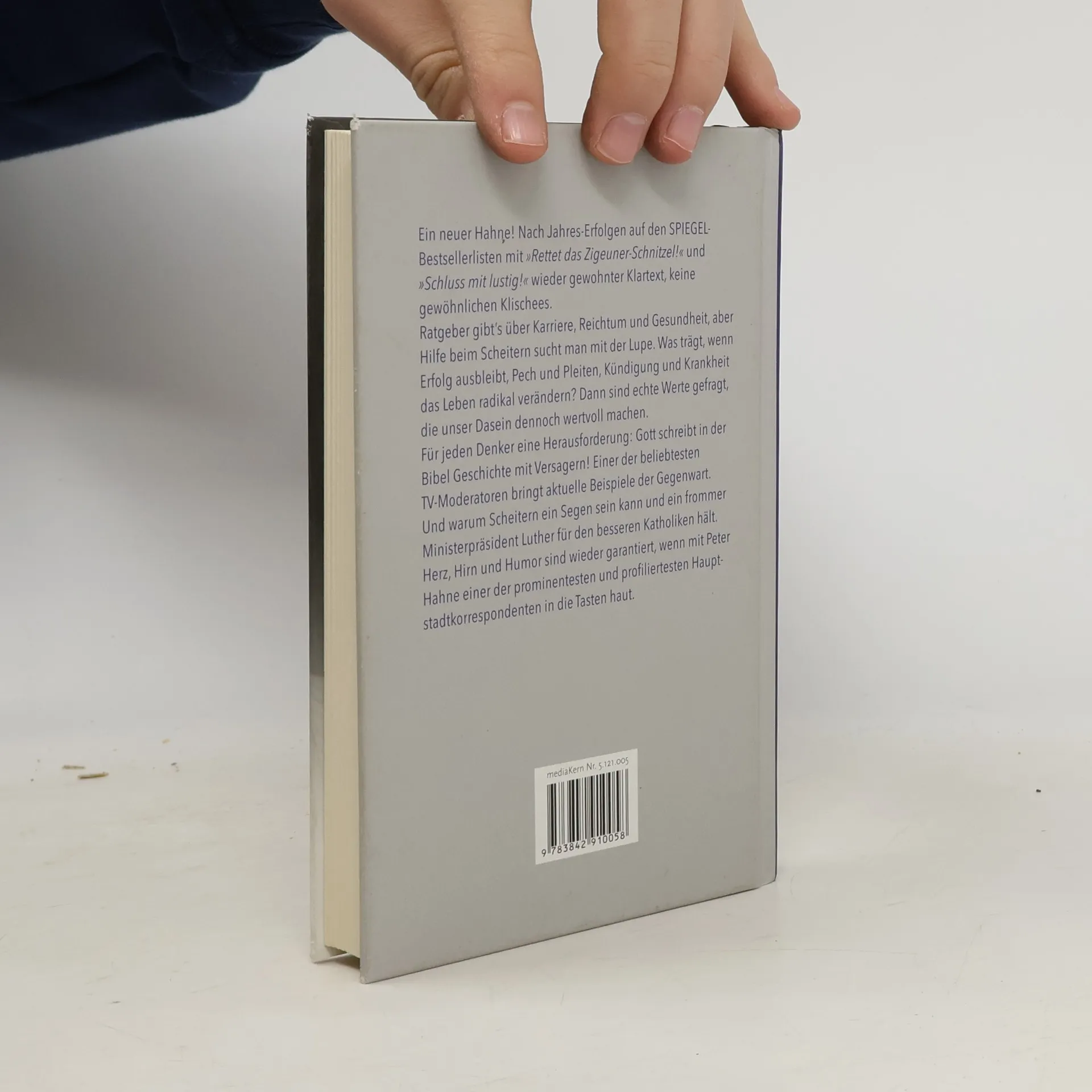 Ein neuer Hahne! Nach Jahres-Erfolgen auf den SPIEGEL-Bestsellerlisten mit 'Rettet das Zigeunerschnitzel' und 'Schluss mit lustig!' wieder gewohnter Klartext, keine gewöhnlichen Klischees. Ratgeber gibt’s über Karriere, Reichtum und Gesundheit, aber Hilfe beim Scheitern sucht man mit der Lupe. Was trägt, wenn Erfolg ausbleibt, Pech und Pleiten, Kündigung und Krankheit das Leben radikal verändern? Dann sind echte Werte gefragt, die unser Dasein dennoch wertvoll machen. Für jeden Denker eine Herausforderung: Gott schreibt in der Bibel Geschichte mit Versagern! Einer der beliebtesten TV-Moderatoren bringt aktuelle Beispiele der Gegenwart. Und warum Scheitern ein Segen sein kann und ein frommer Ministerpräsident Luther für den besseren Katholiken hält. Herz, Hirn und Humor sind wieder garantiert, wenn mit Peter Hahne einer der prominentesten und profiliertesten Hauptstadtkorrespondenten in die Tasten haut.