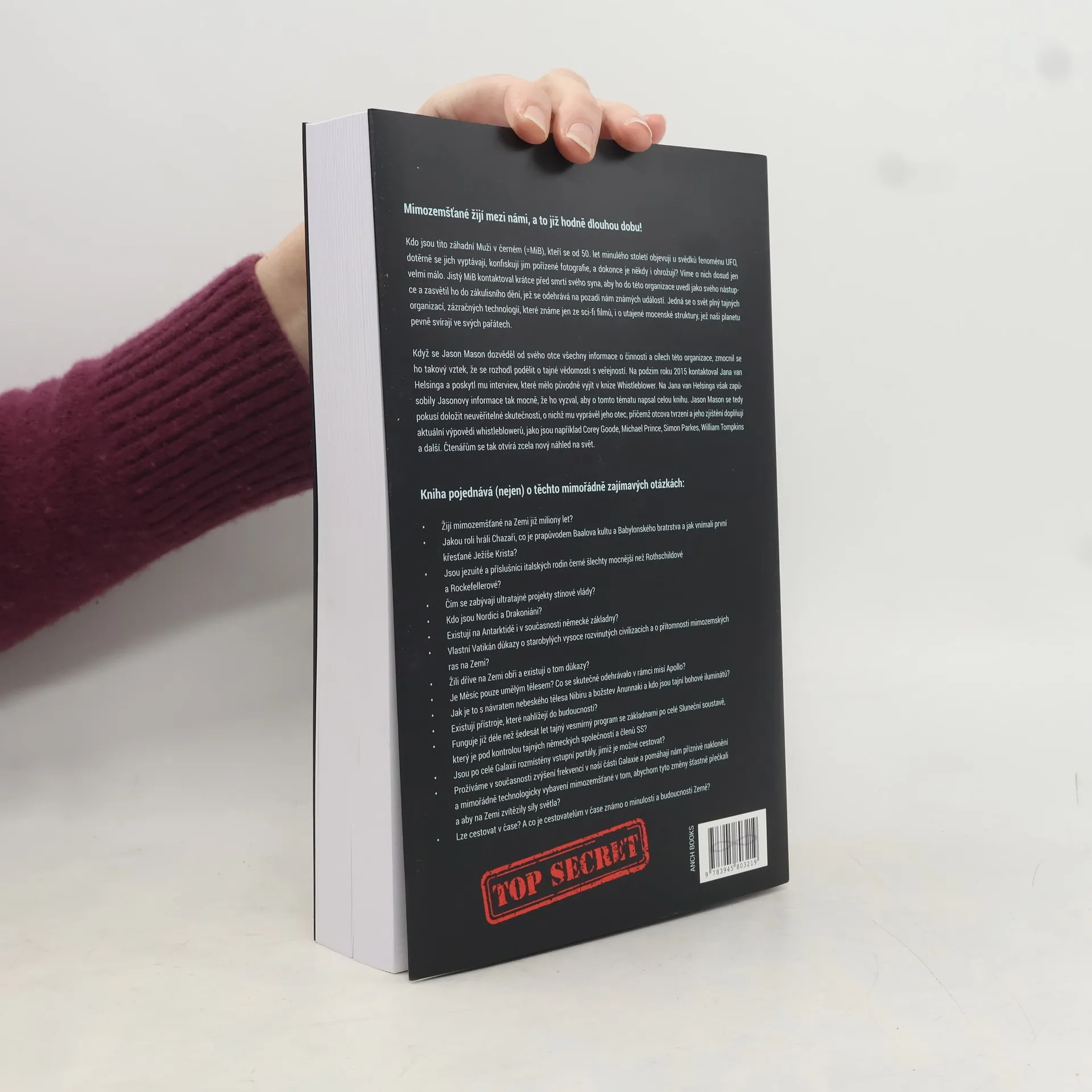 Mimozemšťané žijí mezi námi, a to již hodně dlouhou dobu! Kdo jsou tito záhadní Muži v černém (MiB)? Od 50. let minulého století se objevují u fenoménu UFO, dotěrně se vyptávají svědků, konfiskují jim pořízené fotografie, a někdy je dokonce i ohrožují. Víme o nich dosud jen velmi málo. Jistý MiB kontaktoval krátce před smrtí svého syna, uvedl ho do této organizace jako svého nástupce a zasvětil do zákulisního dění, jež se odehrává na pozadí nám známých událostí. Jedná se o svět plný tajných organizací, zázračných technologií, které známe jen ze sci-fi filmů, i utajených mocenských struktur, jež naši planetu pevně svírají v pařátech. Když se Jason Mason dozvěděl od svého otce všechny informace o činnosti a cílech této organizace, zmocnil se ho takový vztek, že se rozhodl podělit o tajné vědomosti s veřejností. Na podzim roku 2015 kontaktoval Jana van Helsinga a poskytl mu interview, které mělo původně vyjít v knize Whistleblower!. Na Jana van Helsinga zapůsobily Jasonovy informace tak mocně, že ho vyzval, aby o tomto tématu napsal celou knihu. Jason Mason se tedy pokusil doložit neuvěřitelné skutečnosti, o nichž mu vyprávěl jeho otec, a jeho tvrzení i zjištění doplňují aktuální výpovědi whistleblowerů, například Coreye Goodea, Michaela Prince, Simona Parkese, Williama Tompkinse a dalších. Čtenářům se tak otvírá zcela nový náhled na svět.