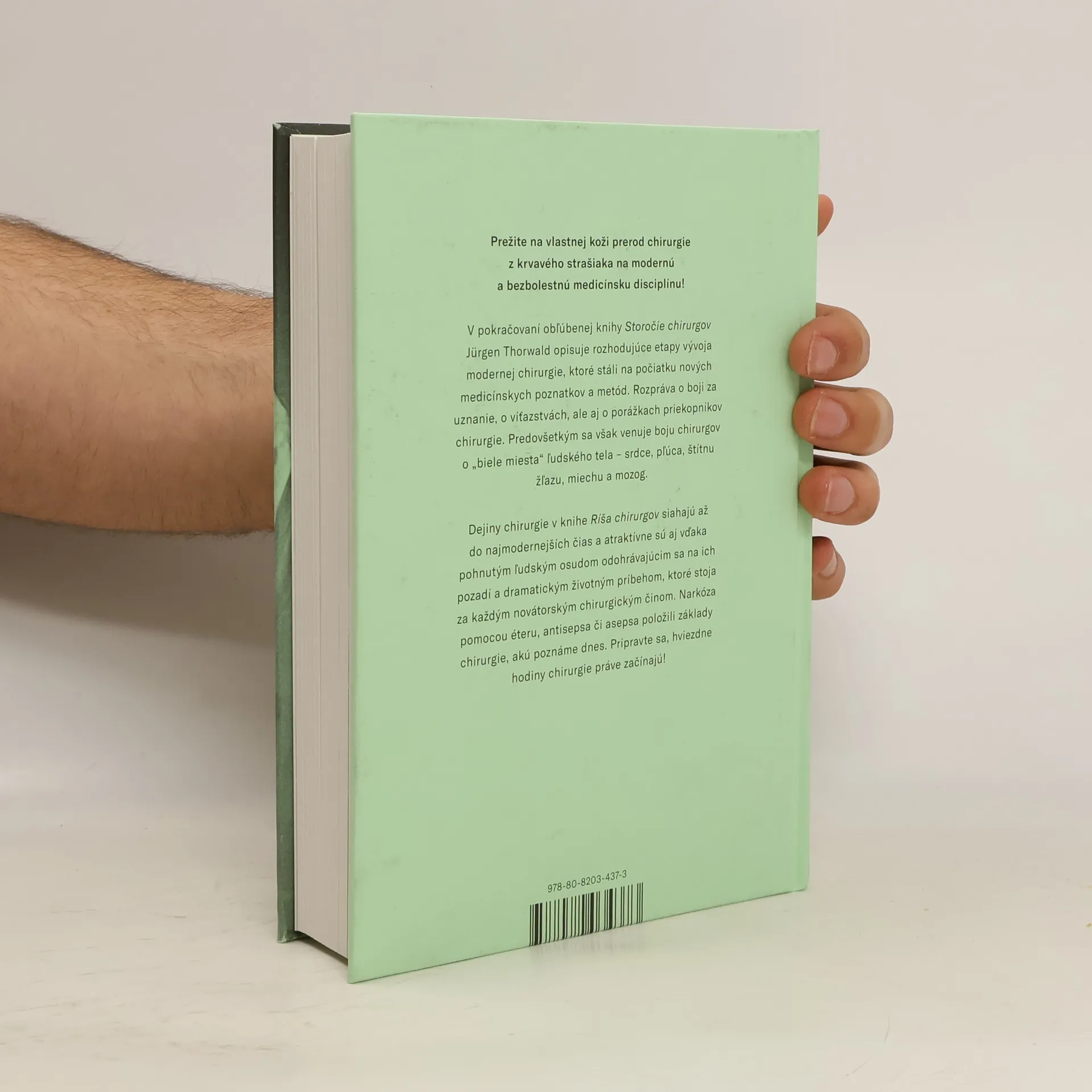 Prežite na vlastnej koži prerod chirurgie z krvavého strašiaka na modernú a bezbolestnú medicínsku disciplínu. Pokračovanie obľúbenej knihy Storočie chirurgov od Jürgena Thorwalda ponúka ďalšie príbehy pozoruhodných dejín medicíny. Pripravte sa, hviezdne hodiny chirurgie práve začínajú! Šestnásteho októbra 1846 sa v Massachusetts General Hospital v Bostone podarilo uskutočniť prvú bezbolestnú operáciu pod narkózou. Začína sa tak bezprecedentný vývoj modernej chirurgie. Jürgen Thorwald opisuje jej rozhodujúce etapy prostredníctvom pôsobivých príhod, ktoré stáli na počiatku nových medicínskych poznatkov a metód. Rozpráva o boji za uznanie, o víťazstvách, ale aj o porážkach priekopníkov chirurgie. Knihy Jürgena Thorwalda predstavujú populárno-vedeckú literatúru v tej najlepšej podobe. S veľkým rozprávačským majstrovstvom nám predstavuje svety medicíny či kriminalisticky z tých najnezvyčajnejších uhlov pohľadu. Ríša chirurgov, ktorá pôvodne vyšla v roku 1958, predstavuje pokračovanie obľúbenej knihy Storočie chirurgov. Thorwald sa v nej venuje boju chirurgov o „biele miesta“ ľudského tela – srdce, pľúca, štítnu žľazu, miechu a mozog. Dejiny chirurgie v knihe Ríša chirurgov siahajú až do najmodernejších čias a atraktívne sú aj vďaka pohnutým ľudským osudom odohrávajúcim sa na ich pozadí a dramatickým životným príbehom, ktoré stoja za každým novátorským chirurgickým činom. Narkóza pomocou éteru, antisepsa či asepsa položili základy chirurgie, akú poznáme dnes. Ak politici hovoria o ríšach, ktoré tvorí vojenská a hospodárska moc, Thorwald hovorí o ríši, ktorá vznikla z boja o život človeka. Jej hrdinami sú lekári a lekárky.