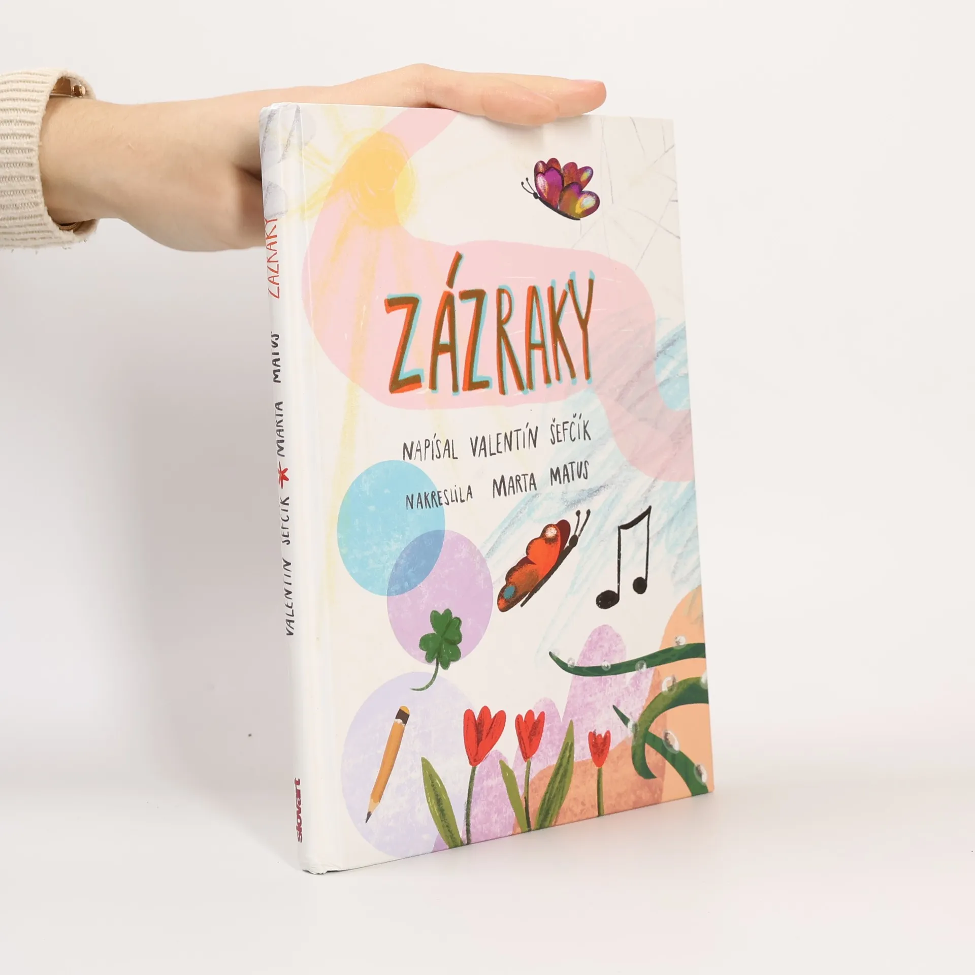Kto neverí na zázraky, nech tú báseň nečíta... Týmto odporúčaním začína jedna z básní Valentína Šefčíka, autora poézie pre deti a mládež. Jeho najnovšia zbierka s názvom ZÁZRAKY ponúka mladým čitateľom štyridsať básní, štyridsať tém. Každá z nich je lyrickým obrazom každodenných malých i veľkých zázrakov nášho života. Mladí čitatelia dostávajú do rúk zbierku, s ktorou môžu nachádzať odpovede na otázky súvisiace so životom a s jeho hodnotami, so svetom i s miestom človeka v ňom. RÁNO i NOC, HUDBA, TICHO či obyčajné PIERKO, ŠŤASTIE, LÁSKA či naša FANTÁZIA... všetky tieto zázraky a ešte oveľa viac nájdete v novej knihe básní Valentína Šefčíka, ktoré sú ako stvorené na recitáciu. Knihu doplnila nádhernými ilustráciami Marta Matus.Publikáciu z verejných zdrojov podporil Fond na podporu umenia.