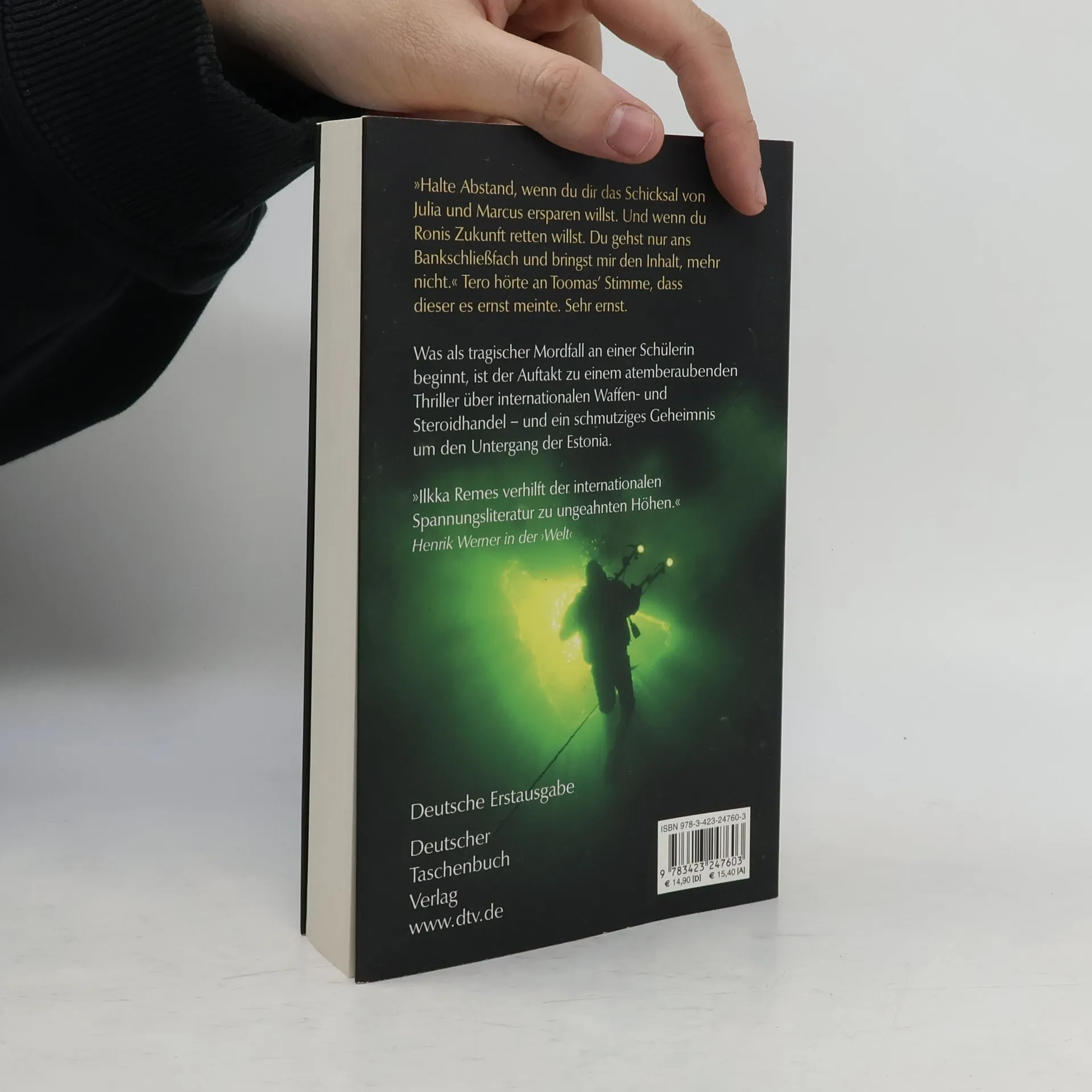 Was geschah wirklich auf der ESTONIA? Der grausame Mord an einer Schülerin Ein mysteriöses Bankschließfach in Lausanne »Ja, er hatte sie im Streit ein bisschen gewürgt. Aber war Julia wirklich tot, als Roni in Panik davonrannte?« Wer war der Fremde, der sich plötzlich über sie beugte, als Roni sich noch einmal zu ihr umgedreht hatte? Während der junge Rennfahrer Roni Airas verzweifelt versucht, den Mann zu finden, den er für Julias Mörder hält, wird er von einem Unbekannten erpresst: Roni soll ihm den Code zu einem Bankschließfach in Lausanne besorgen – und dessen Inhalt. In dem Schließfach befinden sich mysteriöse Zahlungsbelege und eine Videokassette: Taucher schwimmen mit Scheinwerfern um ein Schiff swrack herum. Das Wrack trägt den Namen ESTONIA ...
