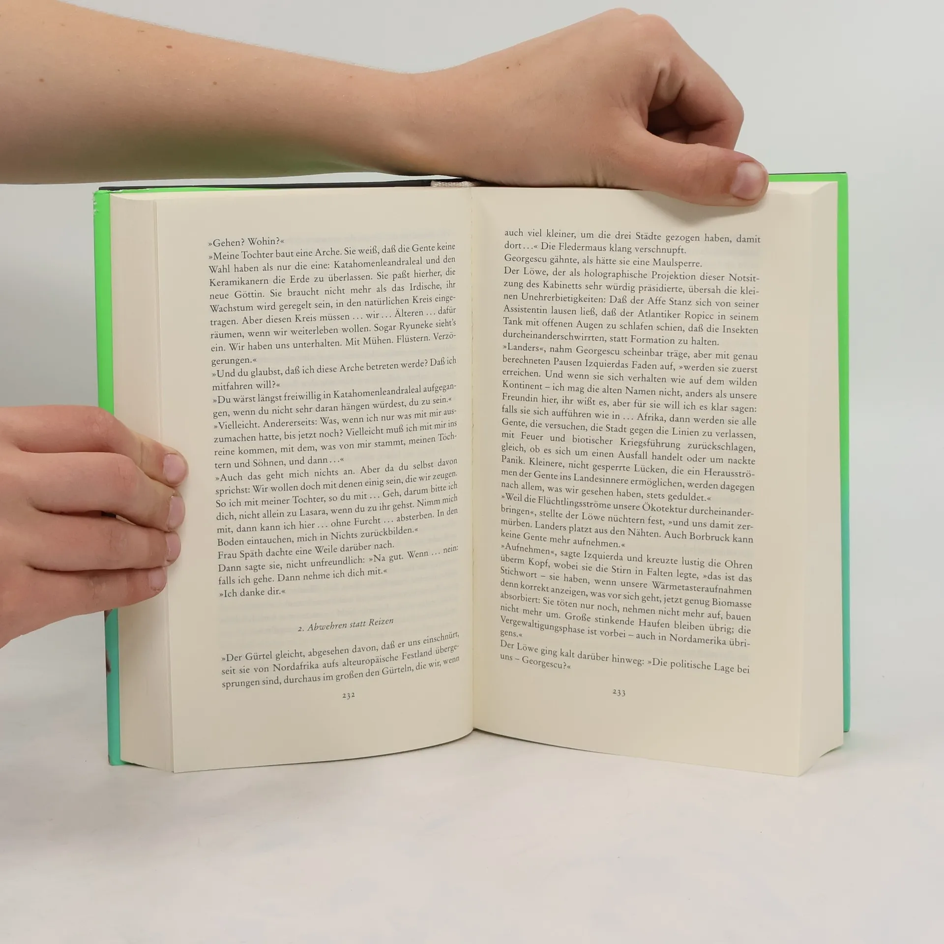 Das Zeitalter, das wir kennen, ist längst eingeschlafen. Wo einmal Europa war, gibt es nur noch drei labyrinthische Städte, die eher gewachsen sind, als daß sie erbaut wurden. Die Welt gehört den Tieren. Fische streiten über Sodomie, Theologinnen mit Habichtsköpfen suchen in Archiven nach Zeugnissen der Menschheit, und Cyrus Golden, der Löwe, lenkt den Staat der drei Städte. Als ein übermächtiger Gegner die neue Gesellschaft bedroht, schickt er den Wolf Dimitri als Diplomaten aus, im einstigen Nordamerika einen Verbündeten zu suchen. Die Nachtfahrt über den Ozean und in die tiefen Stollen der Naturgeschichte lehrt den Wolf Riskantes über Krieg, Kunst und Politik und führt ihn bis an den Rand seiner Welt, wo er erkennt, »warum den Menschen passiert ist, was ihnen passiert ist«. Der Roman Die Abschaffung der Arten steht in der Tradition großer spekulativer Literatur über Niedergang und Wiedergeburt der Zivilisation von Thomas Morus, Voltaire und Mary Shelley über H. G. Wells und Jules Verne bis hin zu Stephen King und William Gibson. Wenn Charles Darwin Krieg der Welten geschrieben hätte, vielleicht wäre ein Buch wie dieses dabei herausgekommen: ein abenteuerliches Liebeslied, eine epische Meditation über die Evolutionstheorie und der waghalsige Versuch, Fossilien von Geschöpfen freizulegen, die noch gar nicht gelebt haben.