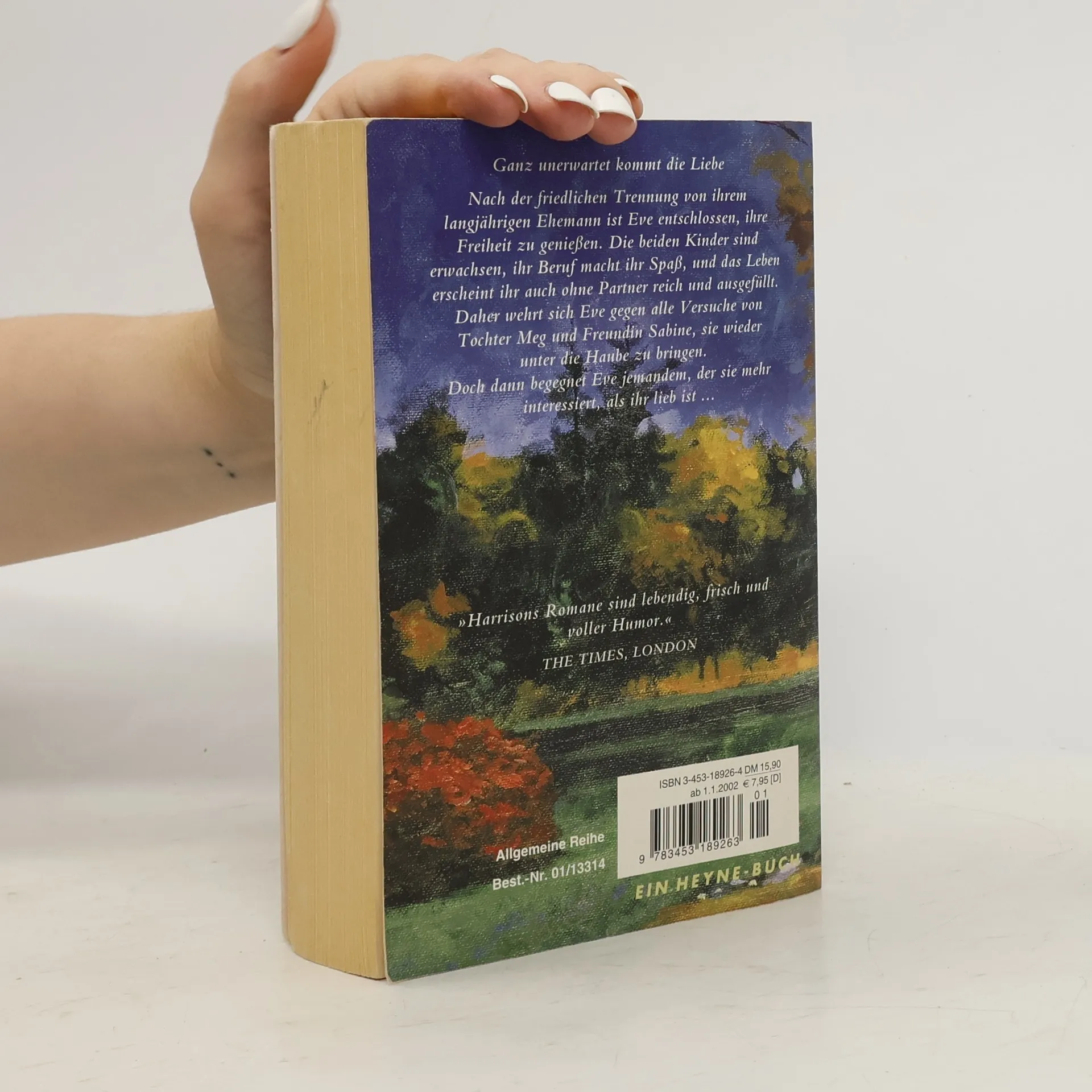 Eve ist glücklich geschieden und lebt mit ihrem Sohn in der Nähe von London und geniesst ihre neugewonnene Freiheit. Als ihr Sohn Ben während einer Party eine Liebschaft mit einer verheirateten Frau anfängt, ist es um den Frieden in Eves Freundeskreis erst einmal geschehen. Ausserdem trifft Eve auf derselben Party auf einen gutaussehenden Amerikaner, der sie mehr interessiert, als ihr lieb ist. Doch es renkt sich alles ein, und Eve tritt am Ende auch dem Gedanken näher, dass der interessante Charles McNally etwas fürs Leben sein könnte. - Ein gut erzählter Trivialroman der bekannten Autorin (zuletzt äStilleben mit Freundinä: BA 11/98), der so dahinpläschert, ohne zu sehr anzustrengen. Gerade richtig etwa für Krankheitstage