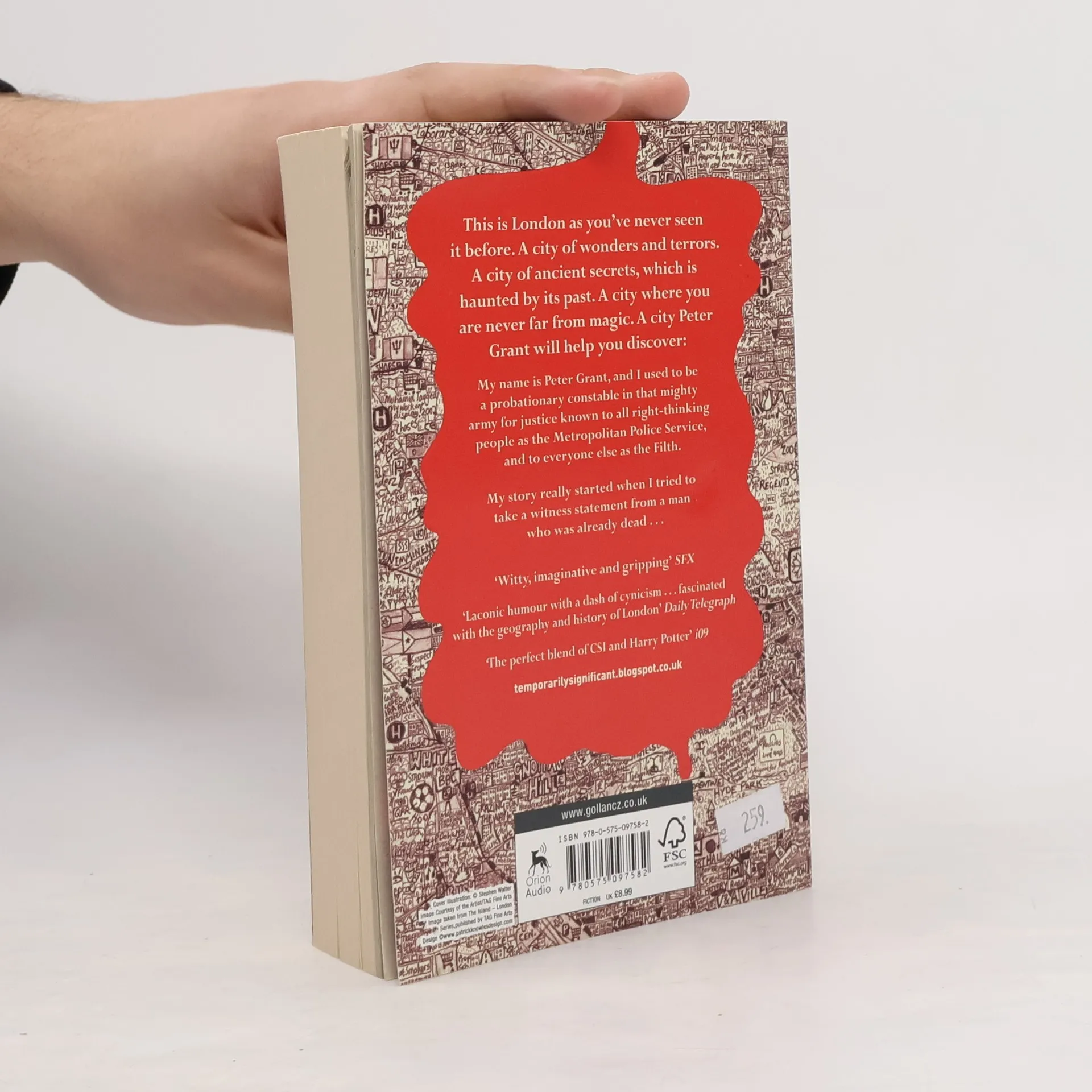 My name is Peter Grant and until January I was just probationary constable in that mighty army for justice known to all right-thinking people as the Metropolitan Police Service (and as the Filth to everybody else) ... One night, in pursuance of a murder inquiry, I tried to take a witness statement from someone who was dead but disturbingly voluable, bringing me to the attention of Inspector Nightingale, the last wizard in England. Now I'm a Detective Constable and a trainee wizard, the first apprentice in fifty years, and my world has become somewhat more complicated: nests of vampires in Purley, negotiating a truce between the warring god and goddess of the Thames, and digging up graves in Covent Garden ...and there's something festering at the heart of the city I love, a malicious vengeful spirit that takes ordinary Londoners and twists them into grotesque mannequins to act out its drama of violence and despair. The spirit of riot and rebellion has awakened in the city, and it's falling to me to bring order out of chaos - or die trying.