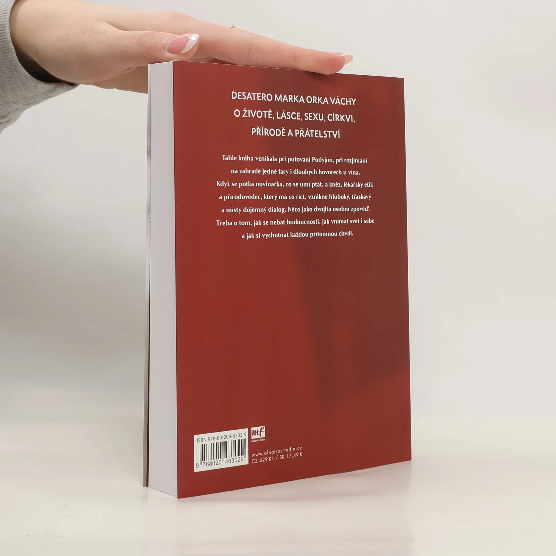 Desatero Marka Orko Váchy o životě, lásce, sexu, církvi, přírodě a přátelství Tahle kniha vznikala při putování Podyjím, při rozjímání na zahradě jedné fary i dlouhých hovorech u vína. Když se potká novinářka, co se umí ptát, a kněz, lékařský etik a přírodovědec, který má co říct, vznikne hluboký, třaskavý a místy dojemný dialog. Něco jako dvojitá osobní zpověď. Třeba o tom, jak se nebát budoucnosti, jak vnímat svět i sebe a jak si vychutnat každou přítomnou chvíli. Marek Orko Vácha a Renata Kalenská zvou čtenáře k empatickému a otevřenému knižnímu rozhovoru, volně inspirovanému biblickým desaterem.
