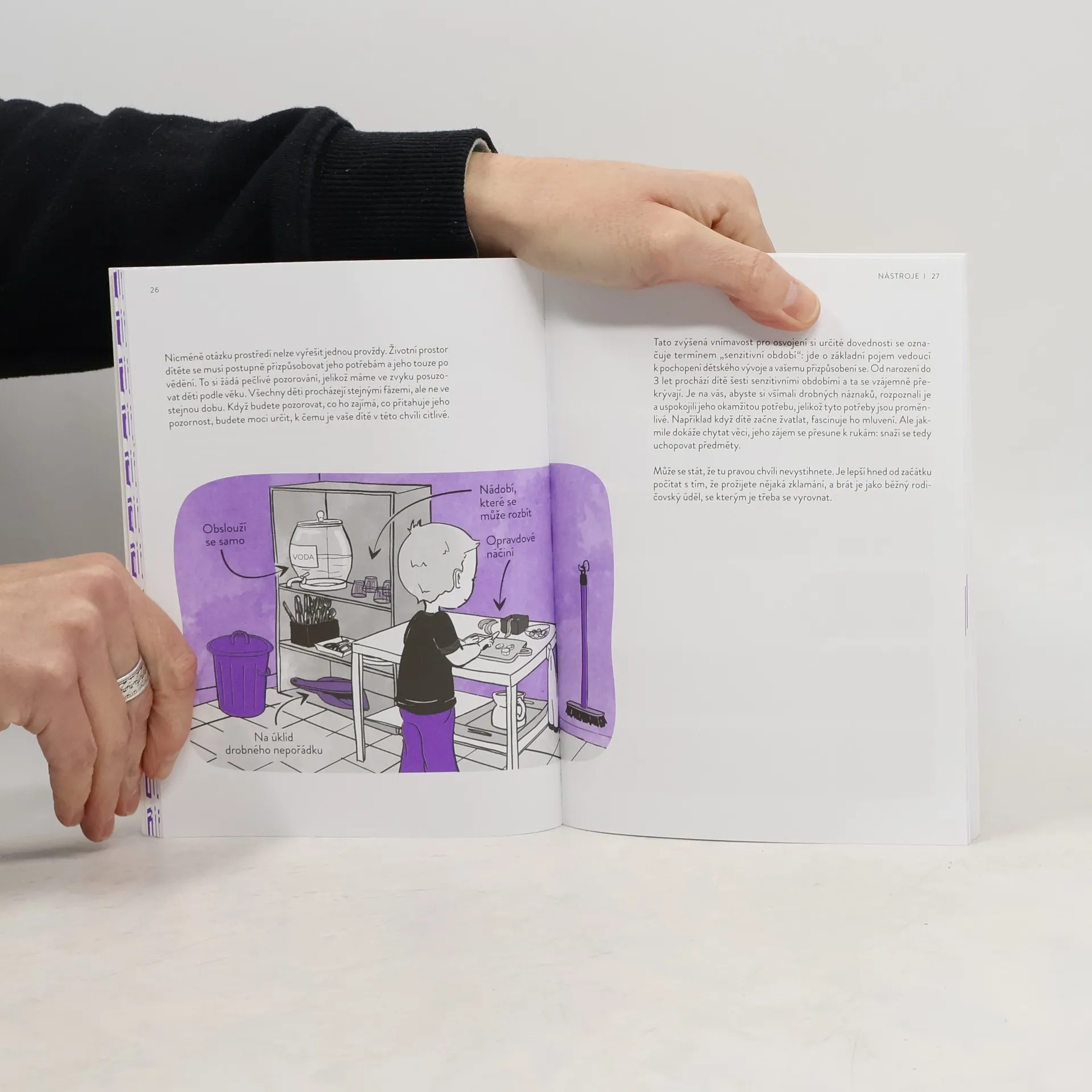Tato kniha poukazuje na univerzálnost přístupu Montessori, který si mohou ve svých domovech osvojit všichni rodiče, a to bez jakýchkoliv finančních výdajů. Čtenáři zde naleznou základní principy této metody, vyjádřené prostřednictvím četných ukázek praktických příkladů přizpůsobených pokrokům dítěte ve věku od 0 do 3 let. Klíčový pojem "senzitivní období", který je zde vysvětlen a využíván, umožní citlivěji vycházet vstříc potřebám dítěte. Podstatná je jeho spokojenost a možnost plně uplatnit potenciál. Díky respektu a porozumění této bytosti se vytváří mírový svět. O to Maria Montessori usilovala a za to celý svůj život bojovala. Tato kniha se navrací ke kořenům jejího učení.