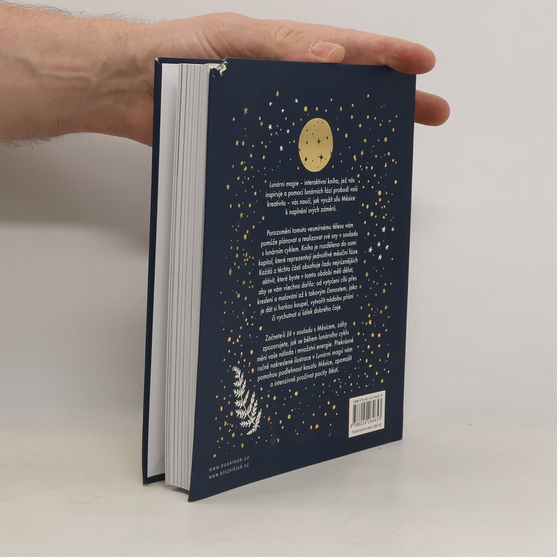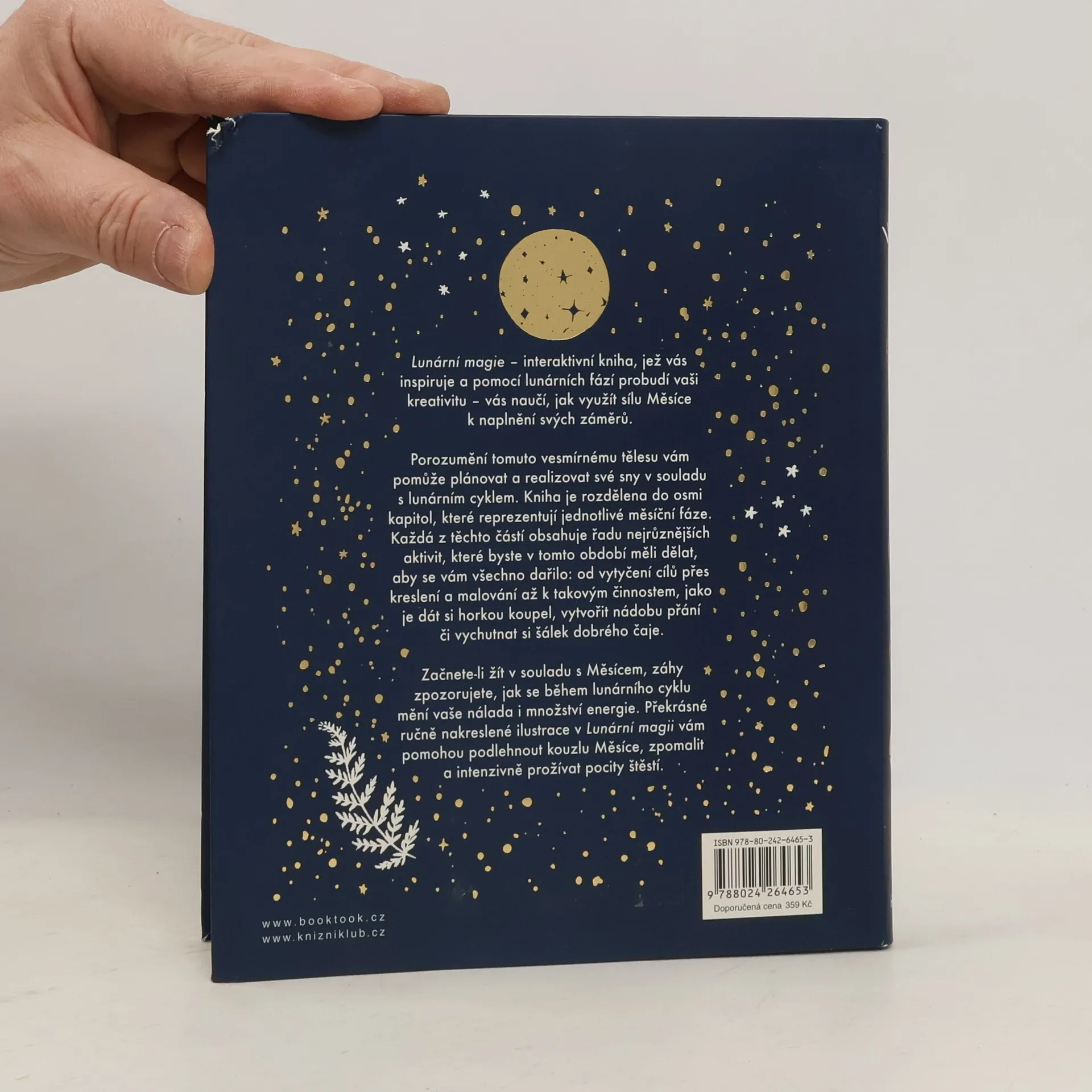 Tato interaktivní kniha vás naučí využívat sílu Měsíce k naplnění vašich záměrů. Porozumění tomuto vesmírnému tělesu vám pomůže plánovat a realizovat své sny v souladu s lunárním cyklem. Kniha je rozdělena do osmi kapitol, které reprezentují jednotlivé měsíční fáze, přičemž každá z těchto částí obsahuje celou řadu nejrůznějších aktivit spojených s hlavním tématem typickým pro dané období: od vytyčení cílů, přes kreslení a malování, až k takovým činnostem, jako je horká koupel, vytvoření nádoby přání nebo prosté vychutnání šálku dobrého čaje. Začnete-li žít v souladu s Měsícem, záhy zpozorujete, jak se během lunárního cyklu mění vaše nálada i množství energie. Překrásné ilustrace v této knize vám pomohou podlehnout kouzlu Měsíce, zpomalit a intenzivně prožívat pocity štěstí.