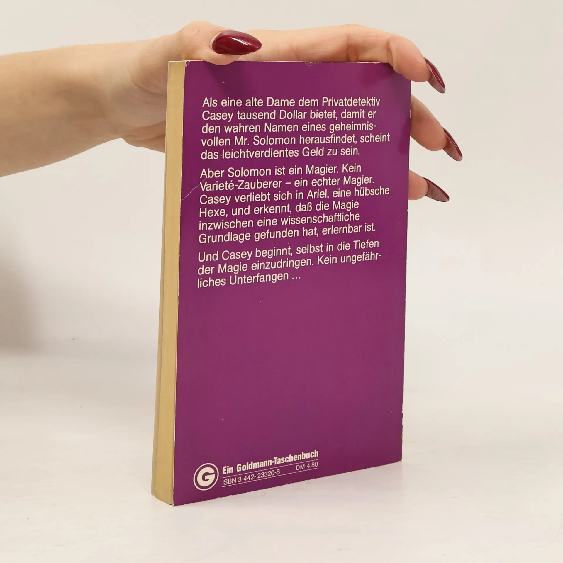 Als eine alte Dame dem Privatdetektiv Casey tausend Dollar bietet, damit er den wahren Namen eines geheimnisvollen Mr. Solomon herausfindet, scheint das leichtverdientes Geld zu sein. Aber Solomon ist ein Magier. Kein Variete-Zauberer - ein echter Magier. Casey verliebt sich in Ariel, eine hübsche Hexe, und erkennt, dass die Magie inzwischen eine wissenschaftliche Grundlage gefunden hat, erlernbar ist. Und Casey beginnt, selbst in die Tiefen der Magie einzudringen. Kein ungefährliches Unterfangen ...