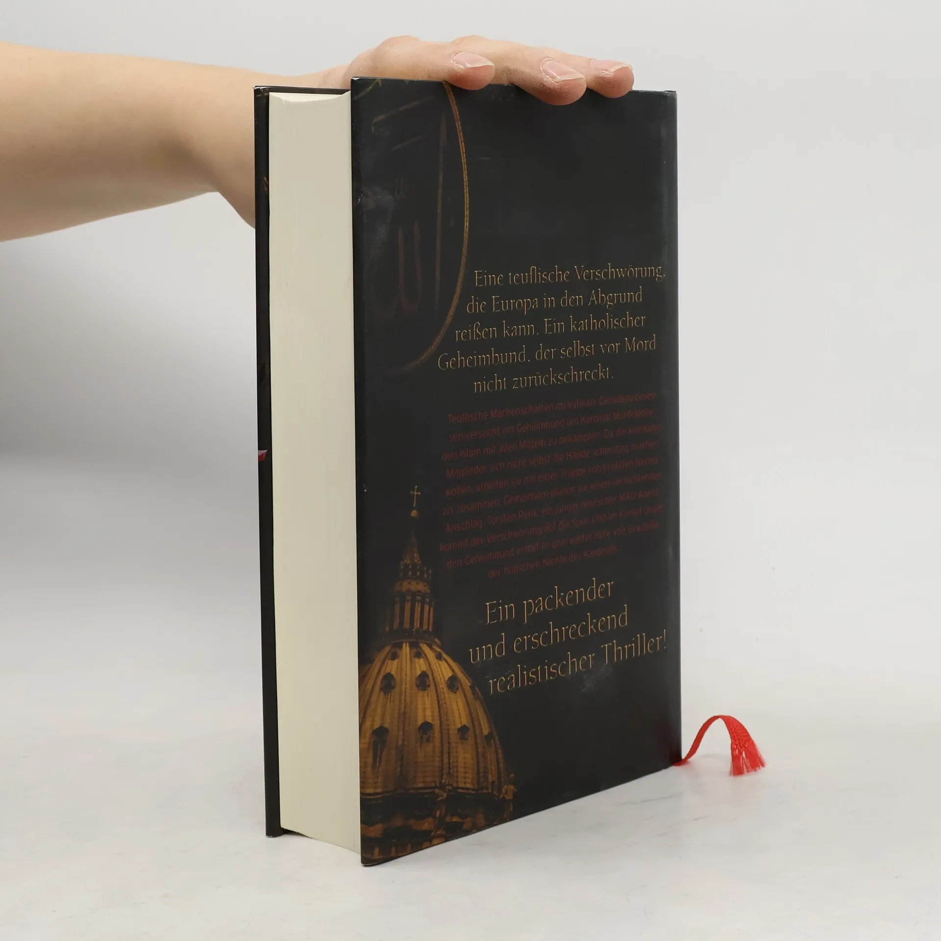 Teuflische Machenschaften im VatikanGeradezu besessen versucht ein Geheimbund um Kardinal Monteleone, den Islam mit allen Mitteln zu bekämpfen. Da die klerikalen Mitglieder sich nicht selbst die Hände schmutzig machen wollen, arbeiten sie mit einer Truppe von brutalen Neonazis zusammen. Gemeinsam planen sie einen blutigen Anschlag auf die EU-Ratsversammlung in Tallinn, auf der der Beitritt der Türkei zur EU verkündet werden soll. Torsten Renk, ein junger deutscher MAD-Agent, kommt der Verschwörung auf die Spur. Und im Kampf gegen den Geheimbund erhält er unerwartet Hilfe von Graziella, der hübschen Nichte des Kardinals …