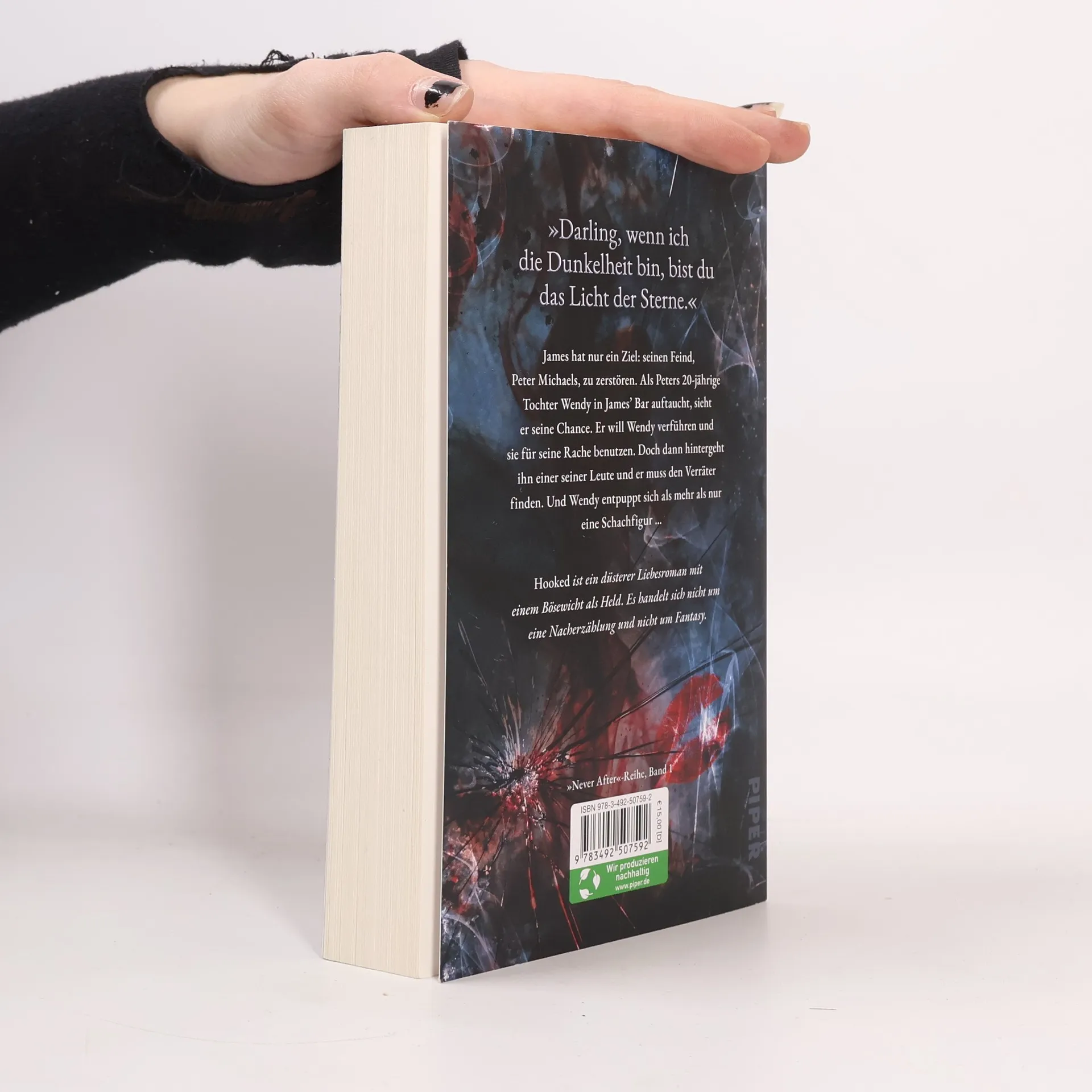 Dark Romance meets Retelling: Er will Rache, aber er will sie mehr ... James hatte immer nur ein Ziel: seinen Feind, Peter Michaels, zu vernichten. Als Peters zwanzigjährige Tochter Wendy in James' Bar auftaucht, sieht er seine Chance gekommen. Er will Wendy verführen und für seine Rache benutzen. Es ist der perfekte Plan, bis die Dinge in James' Organisation zu bröckeln beginnen. Plötzlich muss er den Verräter in ihrer Mitte finden. Und er beginnt, in Wendy mehr als nur eine Schachfigur in seinem Spiel zu sehen. Wendy wurde die meiste Zeit ihres Lebens von ihrem reichen, kalten Vater abgeschirmt. Als sie sich eines abends mit Freunden wegstiehlt, um in einem Club zu feiern, lernt sie den dunklen und geheimnisvollen James kennen. Wendy weiß, dass James gefährlich ist, fühlt sich aber trotzdem zu ihm hingezogen. Während ihre Beziehung immer inniger wird und sie mehr über die Welt erfährt, in der er sich bewegt, kann sie nicht mehr sagen, ob sie sich in den Mann namens James oder das Monster namens Hook verliebt hat. Hooked ist ein düsterer Liebesroman und der erste, unabhängig lesbare, Teil der Never-After-Serie: einer Sammlung von gebrochenen Märchen, in denen die Bösewichte die Helden sind. Es handelt sich nicht um eine Nacherzählung und nicht um Fantasy. Hooked enthält Themen und Inhalte, die möglicherweise nicht für alle Leser: innen geeignet sind. Alle Warnhinweise zum Inhalt findet ihr auf der Webseite der Autorin.