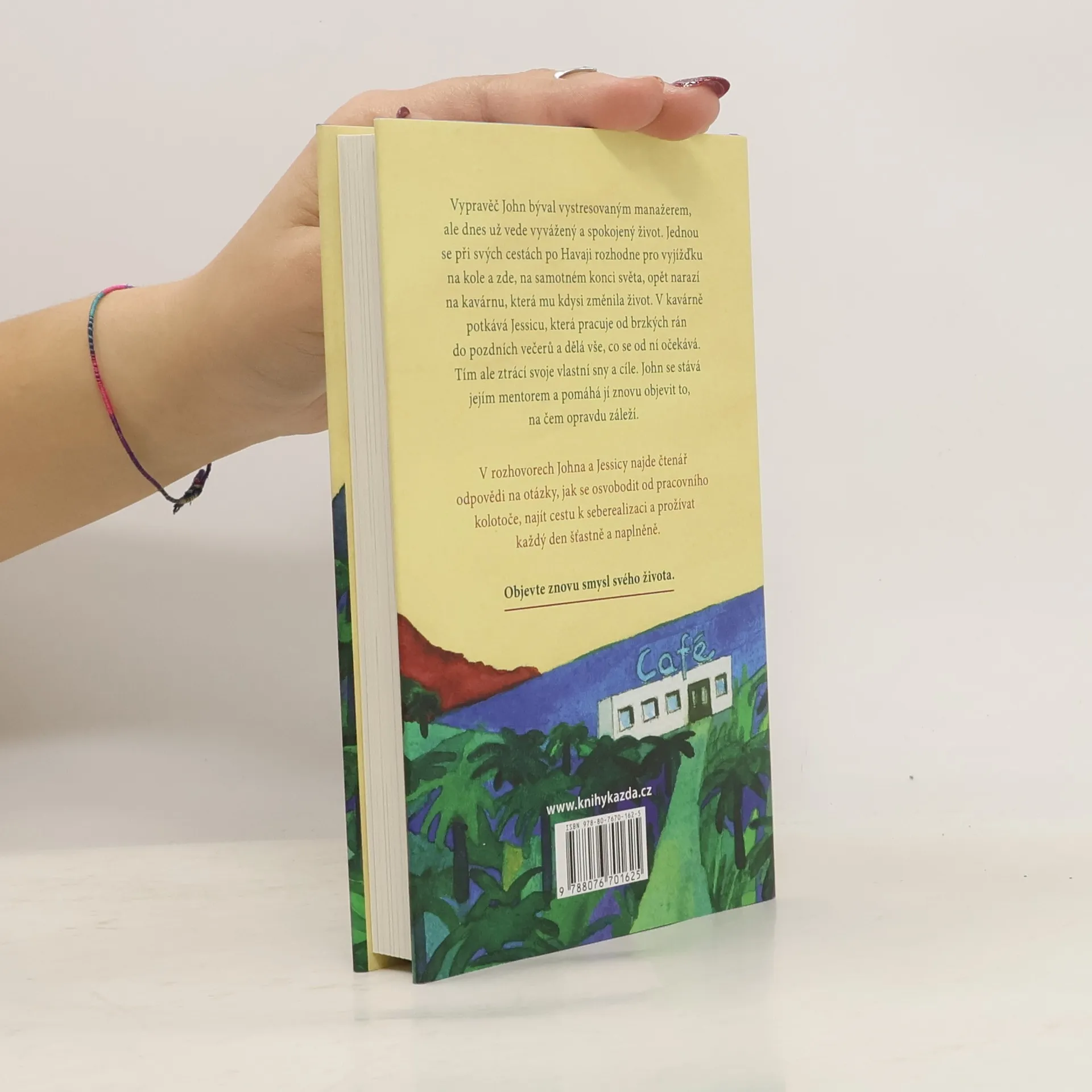 Vypravěč John býval vystresovaným manažerem, ale dnes už vede vyvážený a spokojený život. Jednou se při svých cestách na Havaji rozhodne pro vyjížďku na kole a zde, na samotném konci světa, narazí na kavárnu, která mu změní život. V kavárně potkává Jessicu, která pracuje od brzkých rán do pozdních večerů a dělá vše, co se od ní očekává. Tím ale ztrácí svoje vlastní sny a cíle. John se stává jejím mentorem a pomáhá jí znovu objevit to, na čem opravdu záleží. V rozhovorech Johna a Jessicy najde čtenář odpověď na otázku, jak se osvobodit od každodenního pracovního kolotoče. Objevte znovu svůj smysl života.