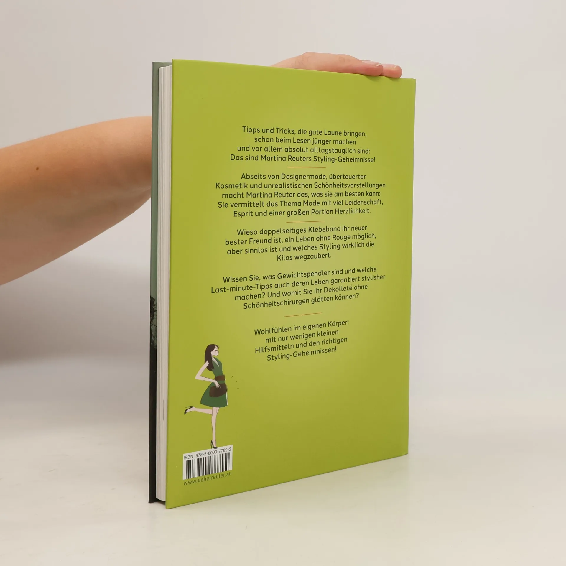 Wieso doppelseitiges Klebeband ihr neuer bester Freund ist, ein Leben ohne Rouge möglich, aber sinnlos ist und welches Styling wirklich die Kilos wegzaubert! Wissen Sie was Gewichtspendler sind und welche Last-Minute-Tipps auch deren Leben garantiert stylisher machen? Und womit Sie Ihr Dekolleté ohne Schönheitschirurgen glätten können? Freche Knallfarben: ja bitte; Schlabberlook; nein danke! Warum Stilmix jung hält, knackig nicht nackig bedeutet und man auch auf Klassiker setzen soll. Das und vieles mehr verrät Martina Reuter in ihrem neuen Buch „Meine Styling-Geheimnisse“ . Ihre modischen Tipps und Tricks bringen gute Laune, machen schon beim Lesen jünger und vor allem: Sie sind für Otto-Normalverbraucher absolut alltagstauglich! Abseits von Designermode, überteuerter Kosmetik und unrealistischen Schönheitsvorstellungen macht Martina Reuter das, was sie am besten kann! Sie vermittelt das Thema Mode mit viel Leidenschaft, Esprit und einer großen Portion Herzlichkeit! Was zählt ist nicht die Konfektionsgröße oder das Alter, sondern das Wohlfühlen im eigenen Körper. Und mit nur wenigen kleinen Hilfsmitteln und den richtigen Styling-Geheimnissen kann man dieses Gefühl ganz leicht unterstützen und dabei eine großartige Figur machen!
