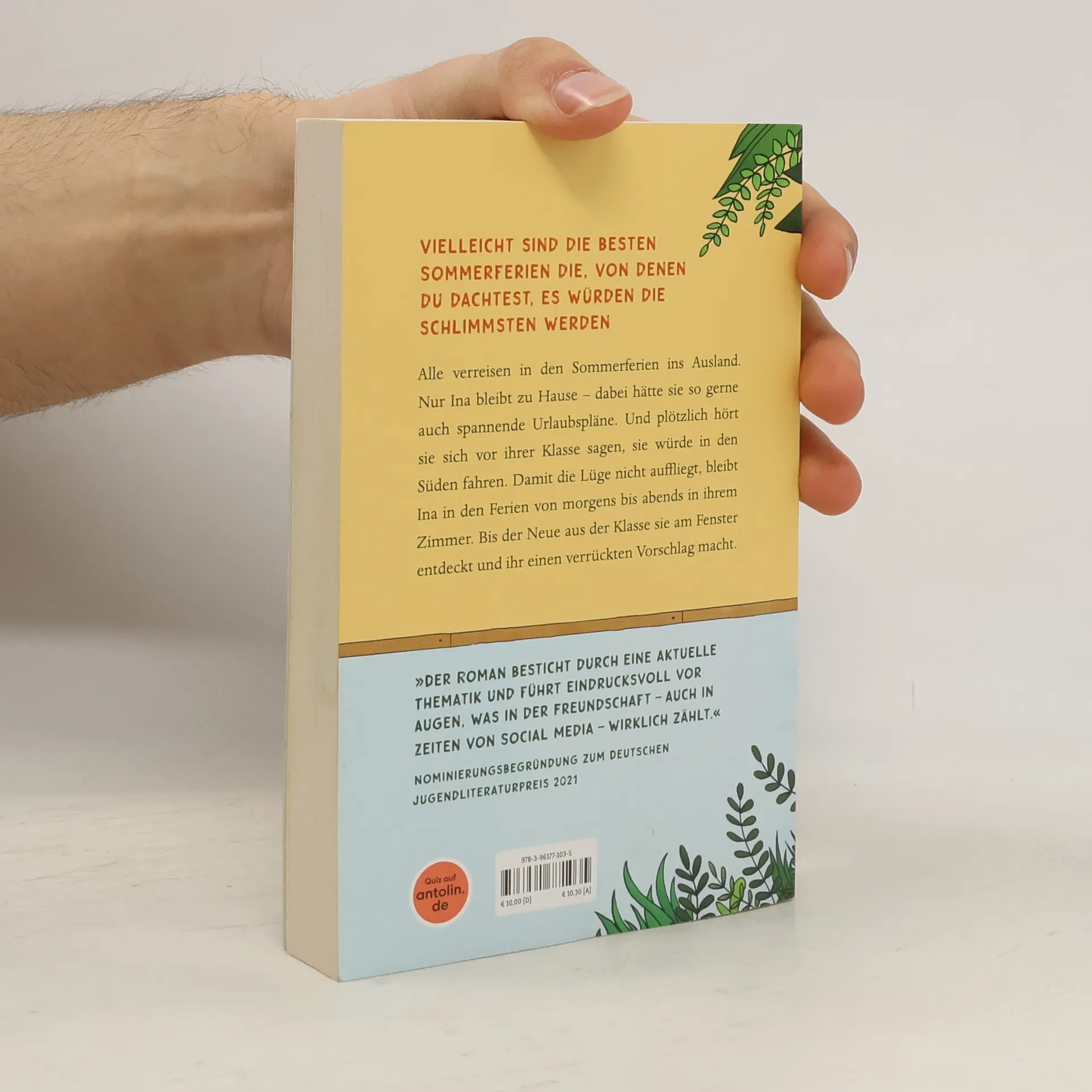 In den Sommerferien verreisen alle ins Ausland. Nur Ina bleibt zu Hause – dabei wünscht sie sich so sehr, sie hätte auch spannende Urlaubspläne. Und plötzlich hört sie sich vor der Klasse sagen, sie würde in den Süden fahren. Damit die Lüge nicht auffliegt, bleibt Ina ab dem ersten Ferientag von morgens bis abends in ihrem Zimmer. Bis der Neue aus der Klasse sie am Fenster entdeckt und ihr einen verrückten Vorschlag macht. Und Ina wird klar: Das Wichtigste ist nicht, wo man sich befindet, sondern, mit wem man dort ist.