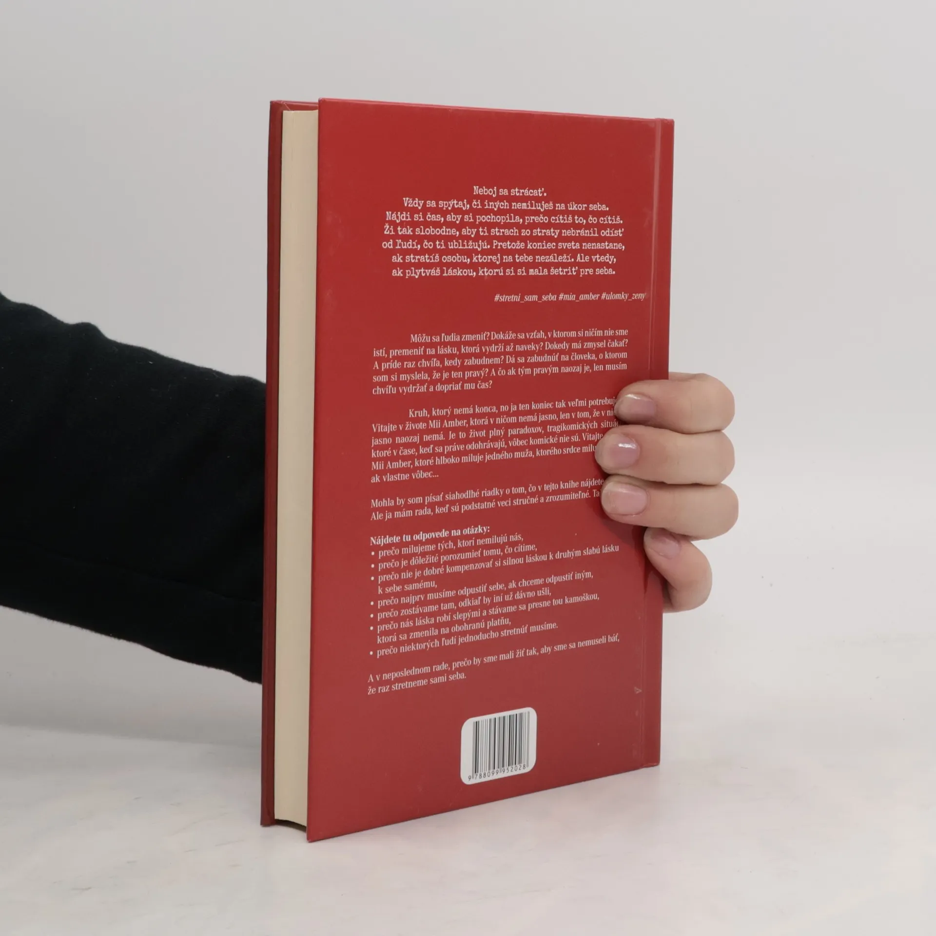 Môžu sa ľudia zmeniť? Dokáže sa vzťah, v ktorom si ničím nie sme istí, premeniť na lásku, ktorá vydrží až naveky? Dokedy má zmysel čakať? A príde raz chvíľa, kedy zabudnem? Dá sa zabudnúť na človeka, o ktorom som si myslela, že je ten pravý? A čo ak tým pravým naozaj je, len musím chvíľu vydržať a dopriať mu čas? Kruh, ktorý nemá konca, no ja ten koniec tak veľmi potrebujem. Vitajte v živote Mii Amber, ktorá v ničom nemá jasno, len v tom, že v ničom jasno naozaj nemá. Je to život plný paradoxov, tragikomických situácií, ktoré v čase, keď sa práve odohrávajú, vôbec komické nie sú. Vitajte v srdci Mii Amber, ktoré hlboko miluje jedného muža, ktorého srdce miluje plytko, ak vlastne vôbec… Mohla by som písať siahodlhé riadky o tom, čo v tejto knihe nájdete. Ale ja mám rada, keď sú podstatné veci stručné a zrozumiteľné. Tak teda… Nájdete tu odpovede na otázky: – prečo milujeme tých, ktorí nemilujú nás, – prečo je dôležité porozumieť tomu, čo cítime, – prečo nie je dobré kompenzovať si silnou láskou k druhým slabú lásku k sebe samému, – prečo najprv musíme odpustiť sebe, ak chceme odpustiť iným, – prečo zostávame tam, odkiaľ by iní už dávno ušli, – prečo nás láska robí slepými a stávame sa presne tou kamoškou, ktorá sa zmenila na obohranú platňu, – prečo niektorých ľudí jednoducho stretnúť musíme. A v neposlednom rade, prečo by sme mali žiť tak, aby sme sa nemuseli báť, že raz stretneme sami seba.
