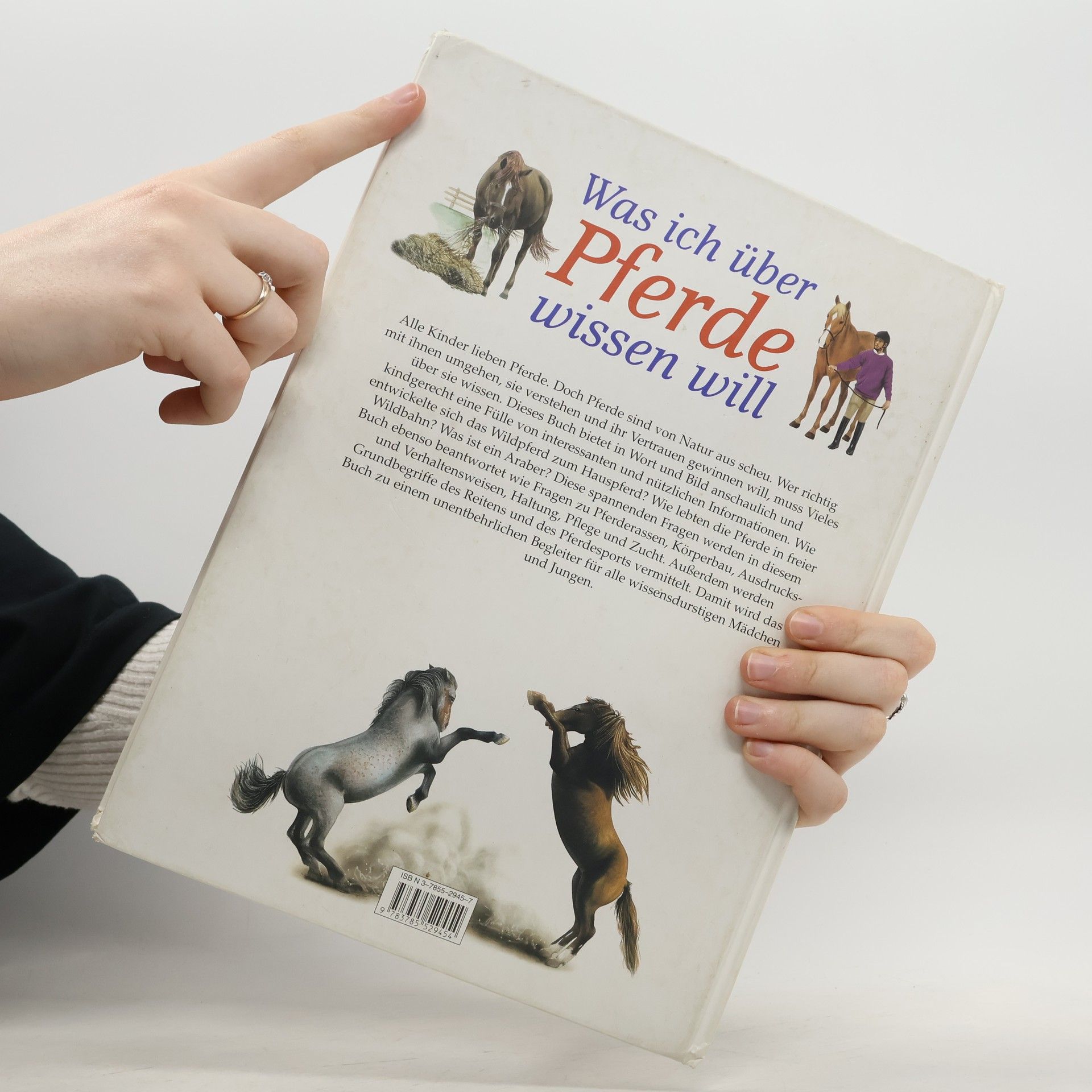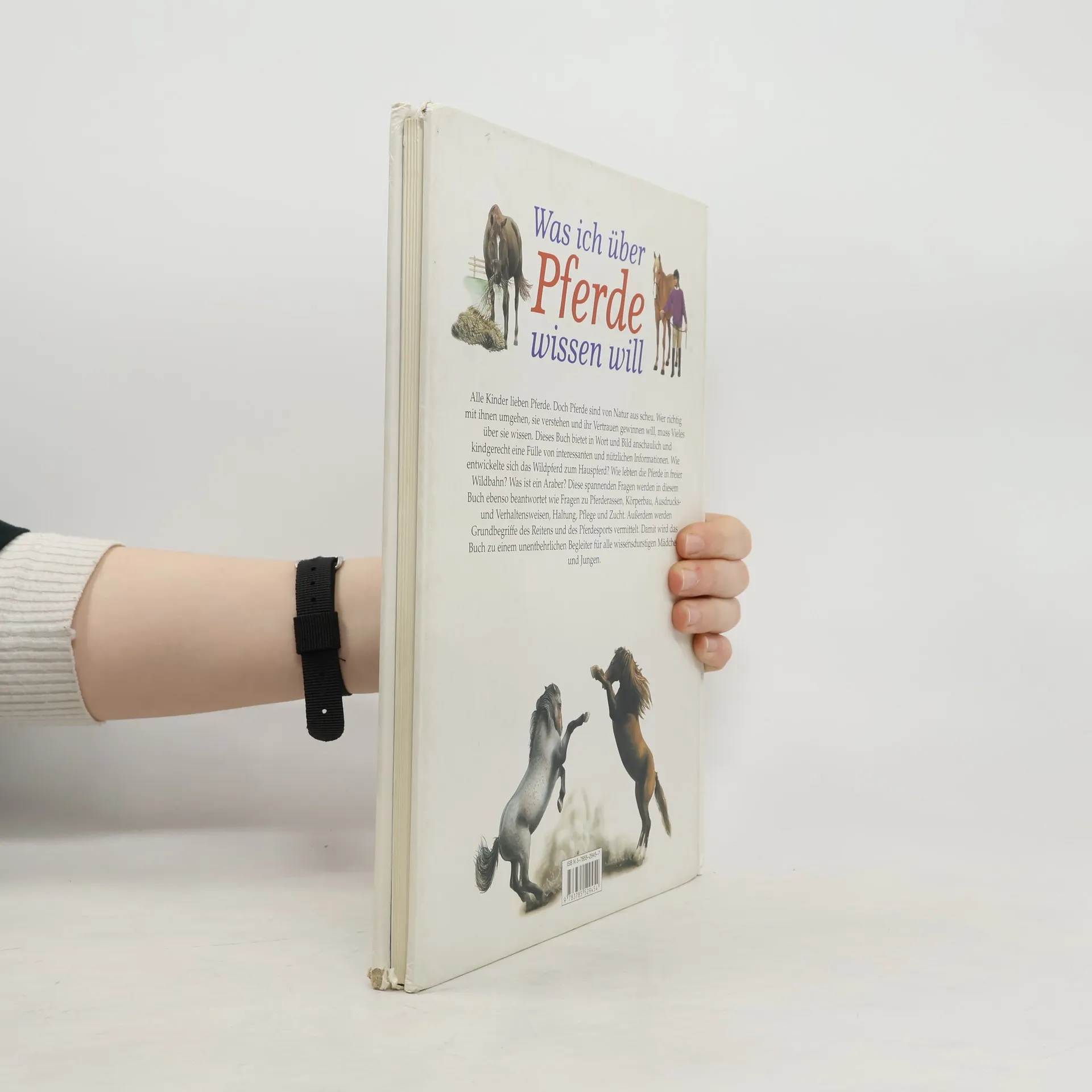 Alle Kinder lieben Pferde. Doch Pferde sind von Natur aus scheu. Wer richtig mit ihnen umgehen, sie verstehen und ihr Vertrauen gewinnen will, muss Vieles über sie wissen. Dieses Buch bietet in Wort und Bild anschaulich und kindgerecht eine Fülle von interessanten und nützlichen Informationen. Wie entwickelte sich das Wildpferd zum Hauspferd? Wie lebten die Pferde in freier Wildbahn? Was ist ein Araber? Diese spannenden Fragen werden in diesem Buch ebenso beantwortet wie Fragen zu Pferderassen, Körperbau, Ausdrucks- und Verhaltensweisen, Haltung, Pflege und Zucht. Außerdem werden Grundbegriffe des Reitens und des Pferdesports vermittelt. Damit wird das Buch zu einem unentbehrlichen Begleiter für alle wissensdurstigen Mädchen und Jungen.