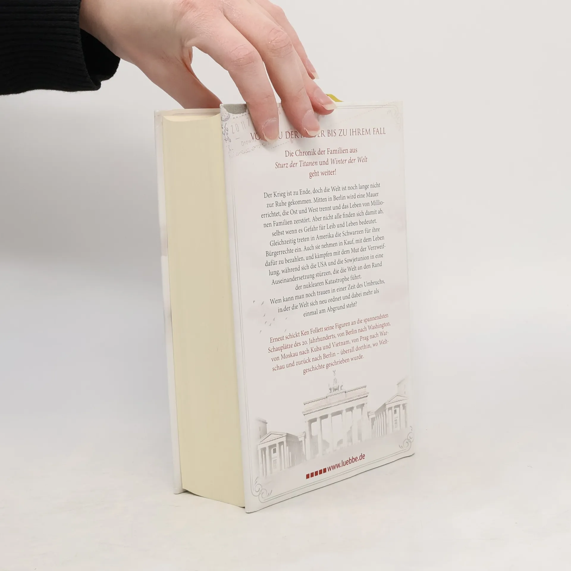VOM BAU DER MAUER BIS ZU IHREM FALL erzählt die epische Familiensaga des Autors der Bestseller. In Ostberlin scheint das Leben von Rebecca Hoffmann in Ordnung, bis sie entdeckt, dass ihr Mann sie im Auftrag der Stasi bespitzelt. Ihr konfrontatives Handeln führt zu einem verhängnisvollen Fehler, der das Schicksal ihrer Familie für immer verändert. In den USA kämpft George Jakes, ein Vertrauter von Justizminister Robert Kennedy, hautnah gegen Rassismus und Ungerechtigkeit und erlebt die Herausforderungen, die mit seiner Hautfarbe verbunden sind. Cameron Dewar, ein Republikaner und CIA-Agent, navigiert durch eine Welt voller Täuschung und Intrigen, während Dimka Dworkin, Berater von Nikita Chruschtschow, in den Konflikt zwischen Sowjetunion und USA verwickelt wird, der die Welt an den Rand des Atomkriegs führt. Seine Schwester Tanja, Journalistin, verfolgt die Ereignisse an den Brennpunkten von Moskau über Kuba bis nach Prag und Warschau. Der Roman verknüpft die Schicksale von Menschen aus Ost und West vor dem Hintergrund der politischen Umwälzungen von den frühen Sechzigern bis zum Ende der Achtzigerjahre und bildet den packenden Abschluss von Ken Folletts Jahrhundert-Trilogie.