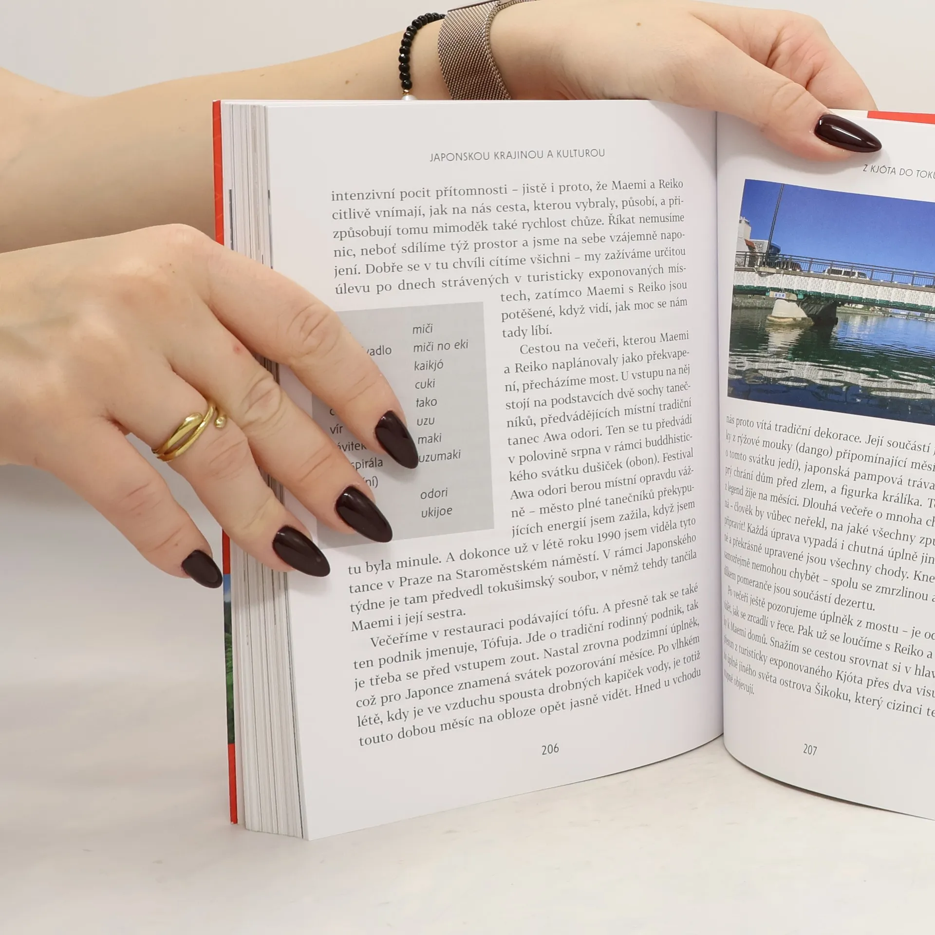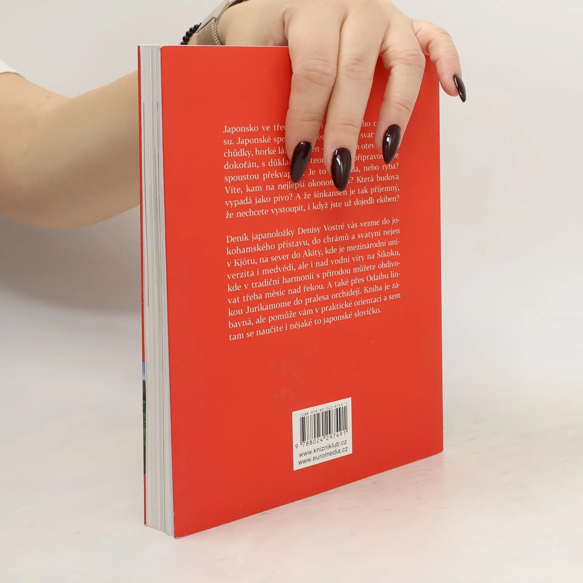 Japonsko ve třech týdnech dynamického cestopisu. Japonské speciality, města, muzea, svatyně, obchůdky, horké lázně onsen – vše očima otevřenýma dokořán, s důkladnou teoretickou přípravou i se spoustou překvapení. Je to čokoláda, nebo ryba? Víte, kam na nejlepší okonomijaki? Která budova vypadá jako pivo? A že šinkansen je tak příjemný, že nechcete vystoupit, i když jste už dojedli ekiben? Deník japanoložky Denisy Vostré vás vezme do jokohamského přístavu, do chrámů a svatyní nejen v Kjótu, na sever do Akity, kde je mezinárodní univerzita i medvědi, či nad vodní víry na Šikoku, kde v tradiční harmonii s přírodou můžete obdivovat třeba měsíc nad řekou. A také přes Odaibu linkou Jurikamome do pralesa orchidejí. Kniha je zábavná, ale pomůže vám v praktické orientaci a sem tam se naučíte i nějaké to japonské slovíčko.