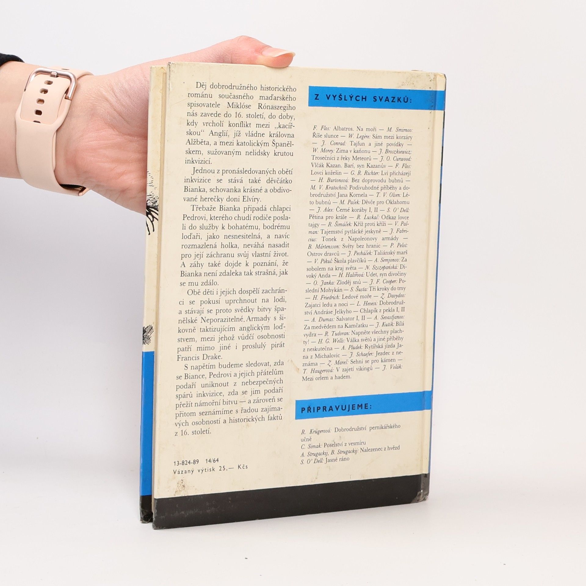Děj dobrodružného historického románu současného maďarského spisovatele Miklóse Rónaszegiho nás zavede do 16. století, do doby, kdy vrcholí konflikt mezi „kaciřskou" Anglií, jíž vládne královna Alžběta, a mezi katolickým Španělskem, sužovaným nelidsky krutou inkvizicí. Jednou z pronásledovaných obětí inkvizice se stává také děvčátko Bianka, schovanka krásné a obdivované herečky doni Elvíry. Třebaže Bianka připadá chlapci Pedrovi, kterého chudí rodiče poslali do služby k bohatému, bodrému loďaři, jako nesnesitelná, a navíc rozmazlená holka, neváhá nasadit pro její záchranu svůj vlastní život. A záhy také dojde k poznání, že Bianka není zdaleka tak strašná, jak se mu zdálo. Obě děti i jejich dospělí zachránci se pokusí uprchnout na lodi, a stávají se proto svědky bitvy španělské Neporazitelné Armady s šikovně taktizujícím anglickým loďstvem, mezi jehož vůdčí osobnosti patří mimo jiné i proslulý pirát Francis Drake. S napětím budeme sledovat, zda se Biance, Pedrovi a jejich přátelům podaří uniknout z nebezpečných spárů inkvizice, zda se jim podaří přežít námořní bitvu - a zároveň se přitom seznámíme s řadou zajímavých osobností a historických faktů z 16. století. Edice KOD, svazek 184.