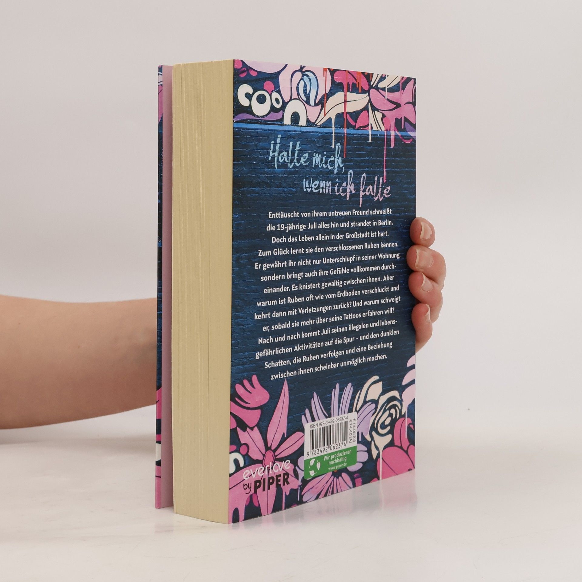 Halte mich, wenn ich falle Enttäuscht von ihrem untreuen Freund schmeißt die 19-jährige Juli alles hin und strandet in Berlin. Doch das Leben allein in der Großstadt ist hart. Zum Glück lernt sie den verschlossenen Ruben kennen. Er gewährt ihr nicht nur Unterschlupf in seiner Wohnung, sondern bringt auch ihre Gefühle vollkommen durcheinander. Es knistert gewaltig zwischen ihnen. Aber warum ist Ruben oft wie vom Erdboden verschluckt und kehrt dann mit Verletzungen zurück? Und warum schweigt er, sobald sie mehr über seine Tattoos erfahren will? Nach und nach kommt Juli seinen illegalen und lebensgefährlichen Aktivitäten auf die Spur – und den dunklen Schatten, die Ruben verfolgen und eine Beziehung zwischen ihnen scheinbar unmöglich machen. Die Großstadt Berlin, rätselhafte Graffitibotschaften und die Höhen und Tiefen der ersten großen Liebe! Der erste New-Adult-Roman von der Autorin von »Songbird« und »Für immer und dich« – wunderbar authentisch, zutiefst emotional und unglaublich intensiv erzählt. »Wildherzige Protagonist*innen, poetische Kribbelmomente und Berlin pur – dieses Herzensbuch ist ein Highlight durch und durch! Weil es wie frischer Wind ist. Wie ein buntes, einzigartiges urbanes Graffiti!« Julia von nothingbetterthanbooksandtea