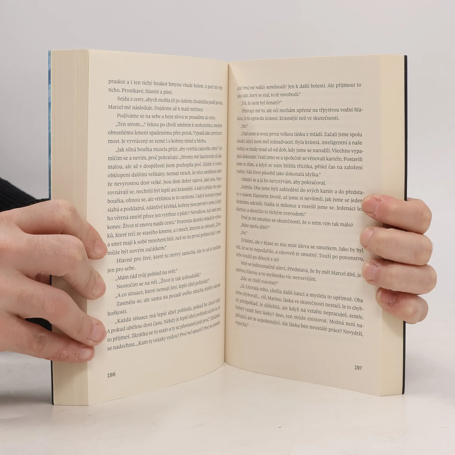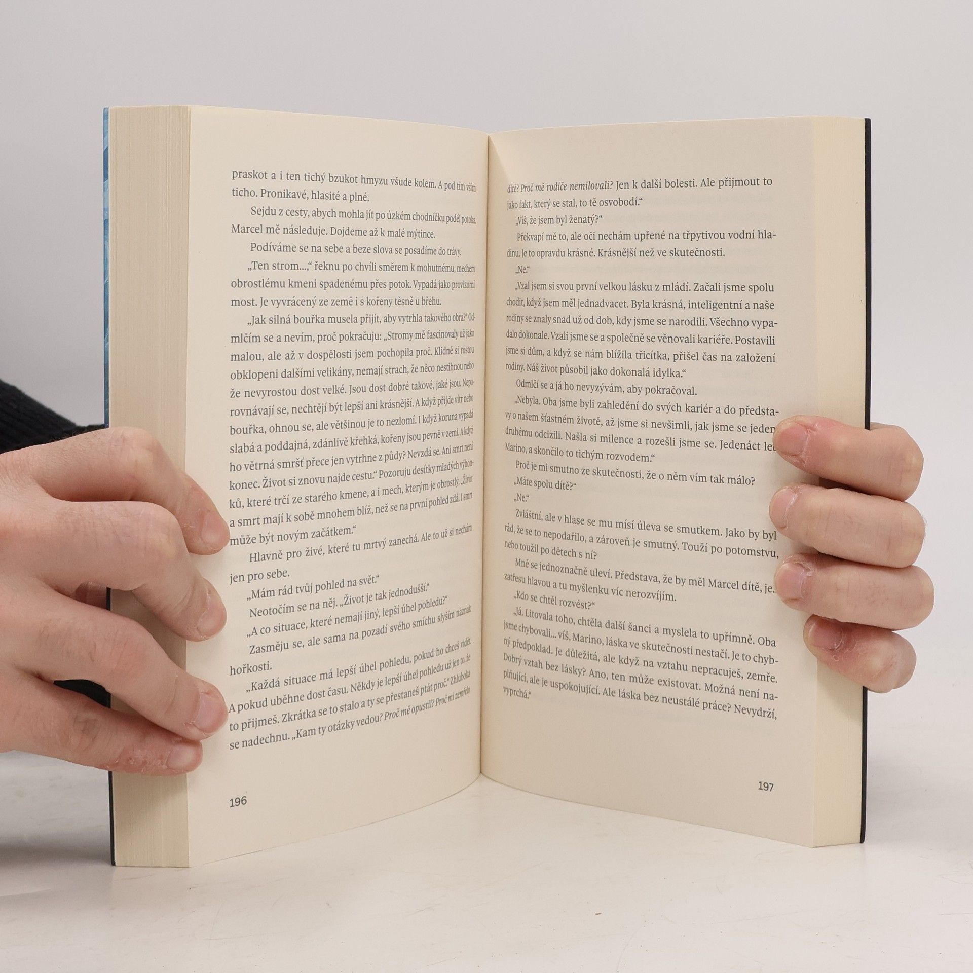 Talentovaná autorka Michala Ries vstoupila na literární scénu skvělou romantickou sérií Na útěku, která se setkala s mimořádným čtenářským ohlasem. Její nový román opět nabízí poutavé čtení o tom, jak složité jsou mužsko-ženské či rodinné vztahy a jak tenká je hranice mezi láskou a nenávistí. Nenávidí její pokřivený odraz. Mohl by milovat její skutečné já? Marina ví, jaké je žít v temnotě. Pozná chuť pohrdání a zloby. Z okovů minulosti se jí však podařilo vysvobodit a žije obyčejný život, ve kterém je šťastná. Její dušení rovnováhu pak ale naruší příchod nového kolegy – minulost a přítomnost se nebezpečně protnou a její klidný život je rázem v ohrožení. Spolu s přízrakem mladé Mariny se vrací i vzpomínky a bolest. Marcel by ji mohl zničit pár větami. Udělá to? A když ne, co za to bude chtít? Proč ji vlastně tak moc nenávidí? A ty jeho oči, ty ji matou nejvíc. Občas totiž vypráví úplně jiný příběh než jeho ústa
