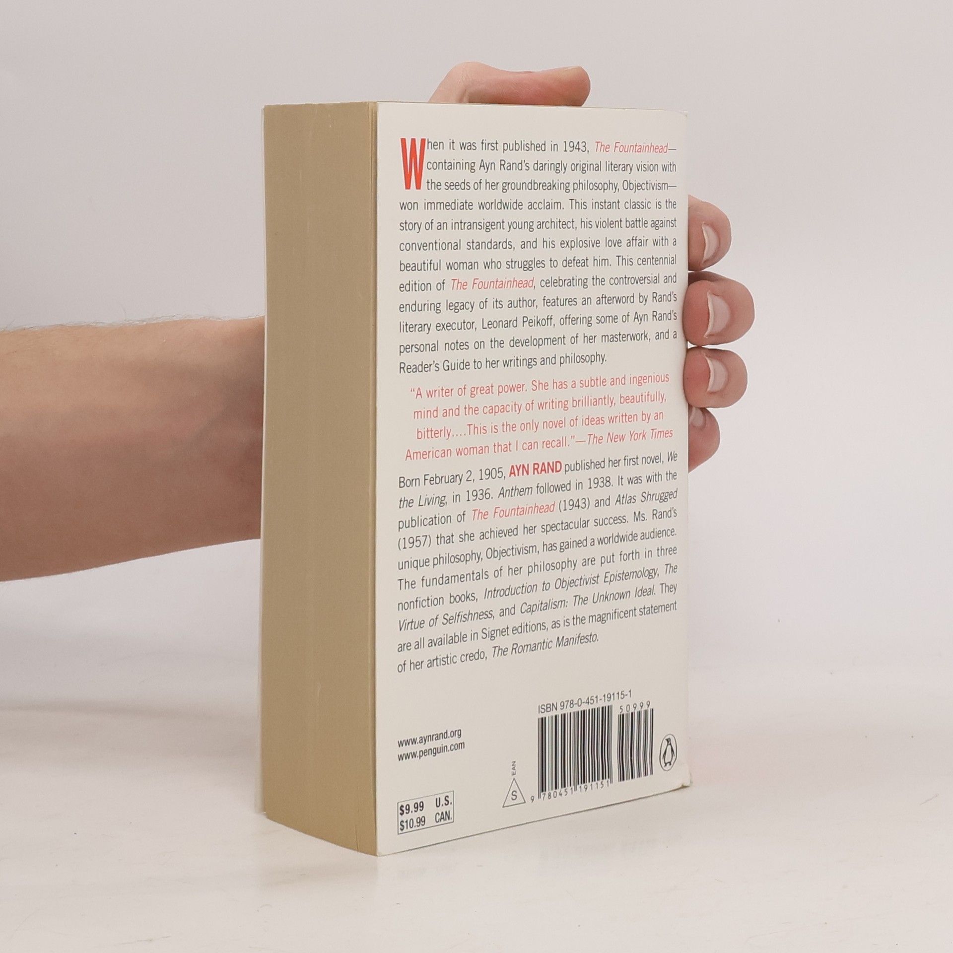 The revolutionary literary vision that sowed the seeds of Objectivism, Ayn Rand's groundbreaking philosophy, and brought her immediate worldwide acclaim. This modern classic is the story of intransigent young architect Howard Roark, whose integrity was as unyielding as granite...of Dominique Francon, the exquisitely beautiful woman who loved Roark passionately, but married his worst enemy...and of the fanatic denunciation unleashed by an enraged society against a great creator. As fresh today as it was then, Rand’s provocative novel presents one of the most challenging ideas in all of fiction—that man’s ego is the fountainhead of human progress... “A writer of great power. She has a subtle and ingenious mind and the capacity of writing brilliantly, beautifully, bitterly...This is the only novel of ideas written by an American woman that I can recall.”—The New York Times