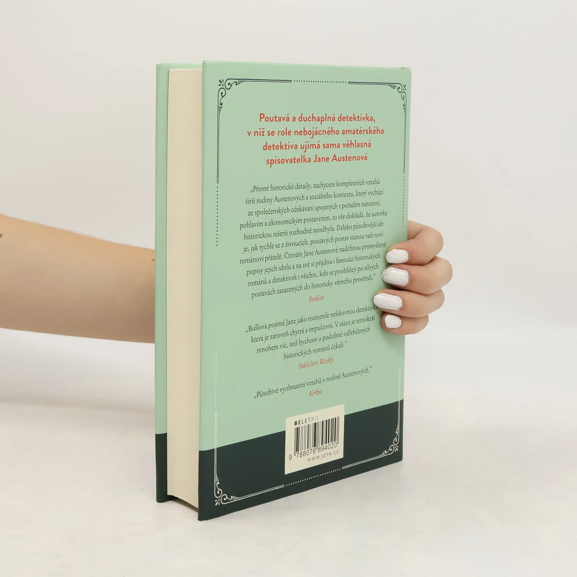 Poutavá a duchaplná detektivka, v níž se role nebojácného amatérského detektiva ujímá sama věhlasná spisovatelka Jane Austenová. Vše začíná během plesu na sousedním panství. V zamčené místnosti je nalezena mrtvá kloboučnice, a tak se kurážná a neuvěřitelně chytrá Jane ocitne ve víru záhady. Když se následně ukáže, že její bratr Georgy u sebe přechovává šperk zavražděné, mají vyšetřovatelé jasno a na obzoru se pomalu rýsuje stín šibenice. Jane nepochybuje, že její bratr je nevinný a případ je složitější, než se navenek zdá. Pátrání ji zavede do všech vrstev místní společnosti a její seznam podezřelých narůstá. Aby případ vyřešila a bratra zachránila, bude muset svůj pozorovací talent podrobit náročné zkoušce. Chytrý příběh se špetkou romantiky, který vás vtáhne do života a doby oblíbené spisovatelky Jane Austenové.