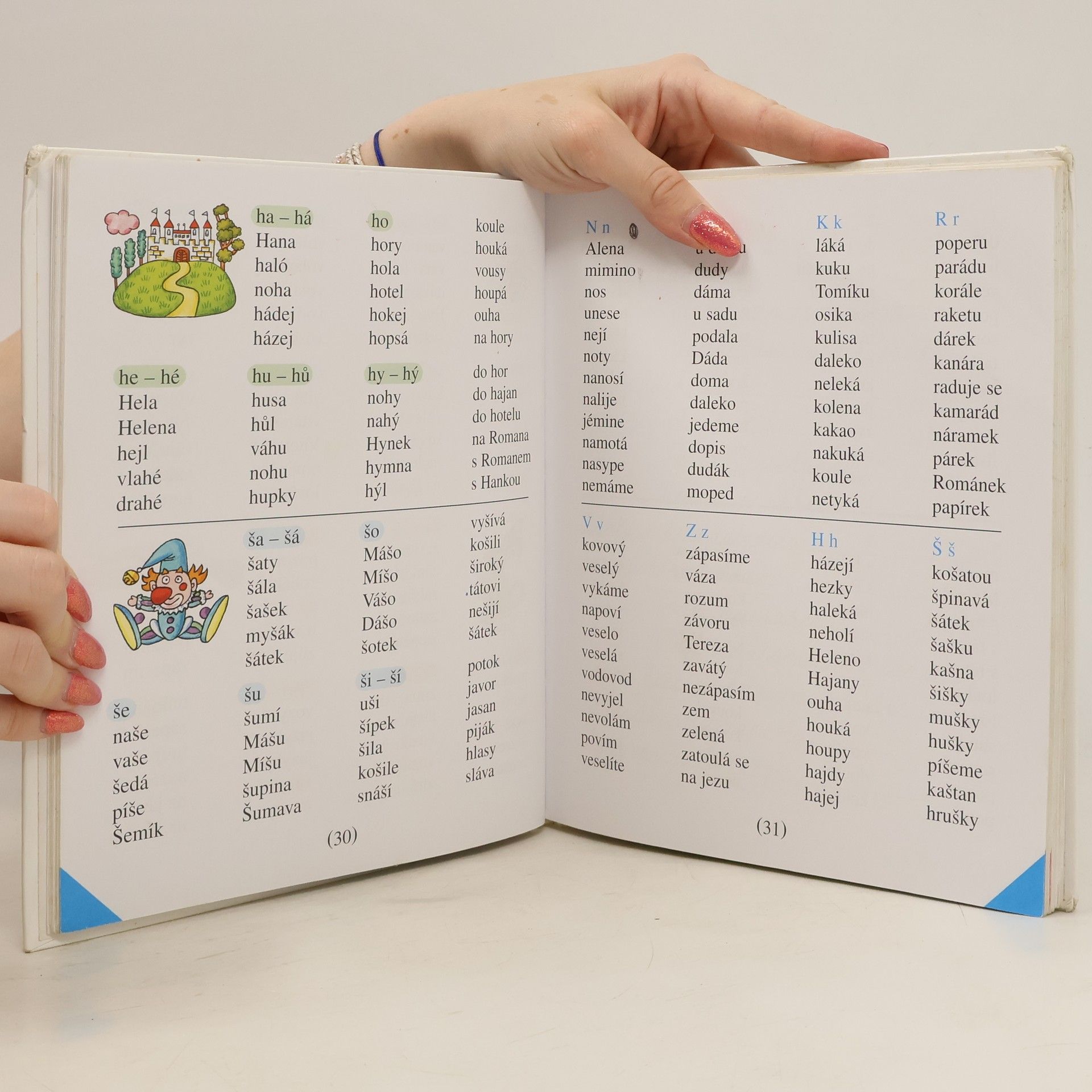 Učebnice obsahuje slabiky a slova pro nácvik uvědomělého čtení, dětské básně, říkadla a krátké příběhy s častou frekvencí přímé řeči. Slabikář byl oceněn Zlatou stuhou 1993 a téhož roku získal i Cenu Comeniana.