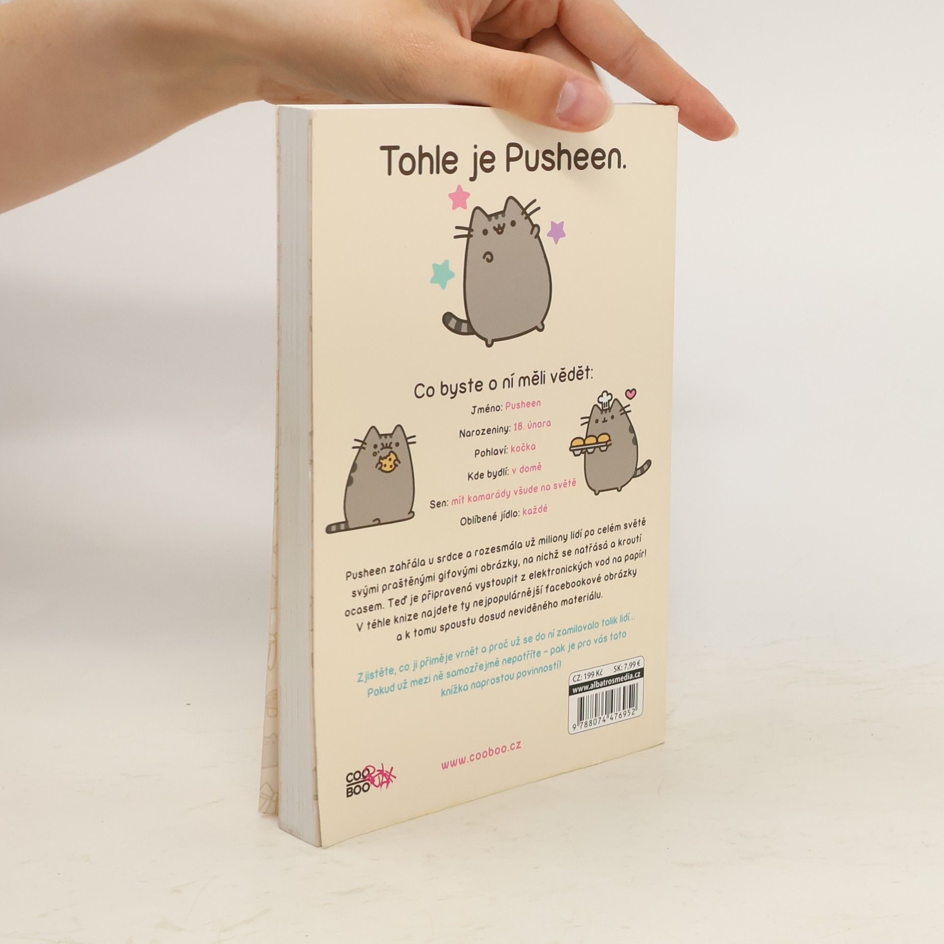 Pusheen zahřála u srdce a rozesmála už miliony lidí po celém světě svými praštěnými gifovými obrázky, na nichž se natřásá a kroutí ocasem. Teď je připravená vystoupit z elektronických vod na papír! V téhle knize najdete ty nejpopulárnější facebookové obrázky a k tomu spoustu dosud neviděného materiálu. Zjistěte, co ji přiměje vrnět a proč už se do ní zamilovalo tolik lidí… Pokud už mezi ně samozřejmě nepatříte – pak je pro vás tato knížka naprostou povinností!