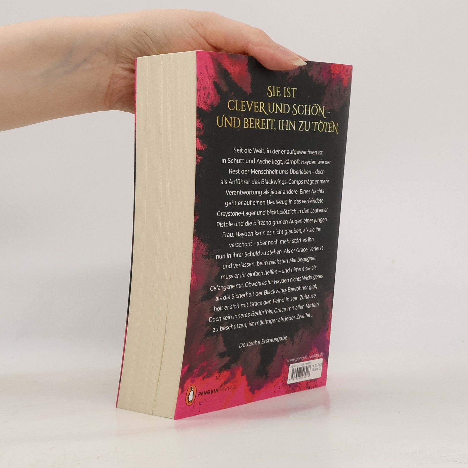 Spicy Romantasy: Der Beginn der süchtig machenden Lovestory von Grace und Hayden! Sie ist clever und schön – und bereit, ihn zu töten Seit die Welt, in der er aufgewachsen ist, in Schutt und Asche liegt, kämpft Hayden wie der Rest der Menschheit ums Überleben – doch als Anführer des Blackwings-Camps trägt er mehr Verantwortung als jeder andere. Eines Nachts geht er auf einen Beutezug in das verfeindete Greystone-Lager und blickt plötzlich in den Lauf einer Pistole und die blitzend grünen Augen einer jungen Frau namens Grace. Hayden kann es nicht glauben, als sie ihn verschont – aber noch mehr stört es ihn, nun in ihrer Schuld zu stehen. Als er Grace, verletzt und verlassen, beim nächsten Mal begegnet, muss er ihr einfach helfen – und nimmt sie als Gefangene mit. Obwohl es für Hayden nichts Wichtigeres als die Sicherheit der Blackwing-Bewohner gibt, holt er sich mit Grace den Feind in sein Zuhause. Doch sein inneres Bedürfnis, Grace mit allen Mitteln zu beschützen, ist mächtiger als jeder Zweifel ... Dramatisch und prickelnd – lies auch die weiteren Bände der Reihe und lass dich gefangen nehmen von einer schicksalhaften Liebe: 1. »Ruins of Love – Gefangen« 2. »Ruins of Love – Gespalten« 3. »Ruins of Love – Zerrissen« 4. »Ruins of Love – Vereint« Du bist hier genau richtig, wenn du auf diese Tropes stehst: • Enemies to Lovers • Forced Proximity