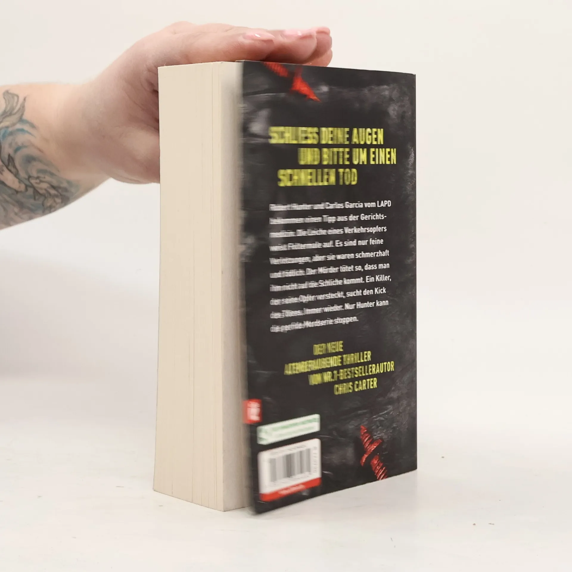 Schließ deine Augen und bitte um einen schnellen Tod Bei der Autopsie eines Verkehrsopfers entdeckt Gerichtsmedizinerin Dr. Hove etwas Seltsames. Tödliche Wunden unter der Haut, die nicht vom Unfall stammen können. Sie ist auf das Werk eines Serienkillers gestoßen. Unbemerkt und mit enormer Expertise lässt er jeden seiner brutalen Morde wie ein zufälliges Unglück aussehen. Dr. Hove meldet ihren Verdacht Robert Hunter und Carlos Garcia vom LAPD Ultra Violent Crimes Unit. Die Detectives stehen vor einem Problem. Wie ermittelt man in einer Mordserie, wenn die Opfer nicht bekannt sind? Wie fängt man einen Killer, wenn es keinen Tatort gibt? Wie stellt man einen sadistischen Jäger, der ausgesprochen vorsichtig vorgeht? Wie hält man einen Unsichtbaren auf, dessen Existenz nicht zu beweisen ist? Der 13. Band der Nr.1-Bestsellerserie mit Profiler Robert Hunter Chris Carter hat jahrelang als Kriminalpsychologe für die Polizei in Los Angeles gearbeitet, das macht seine Bücher so einzigartig.