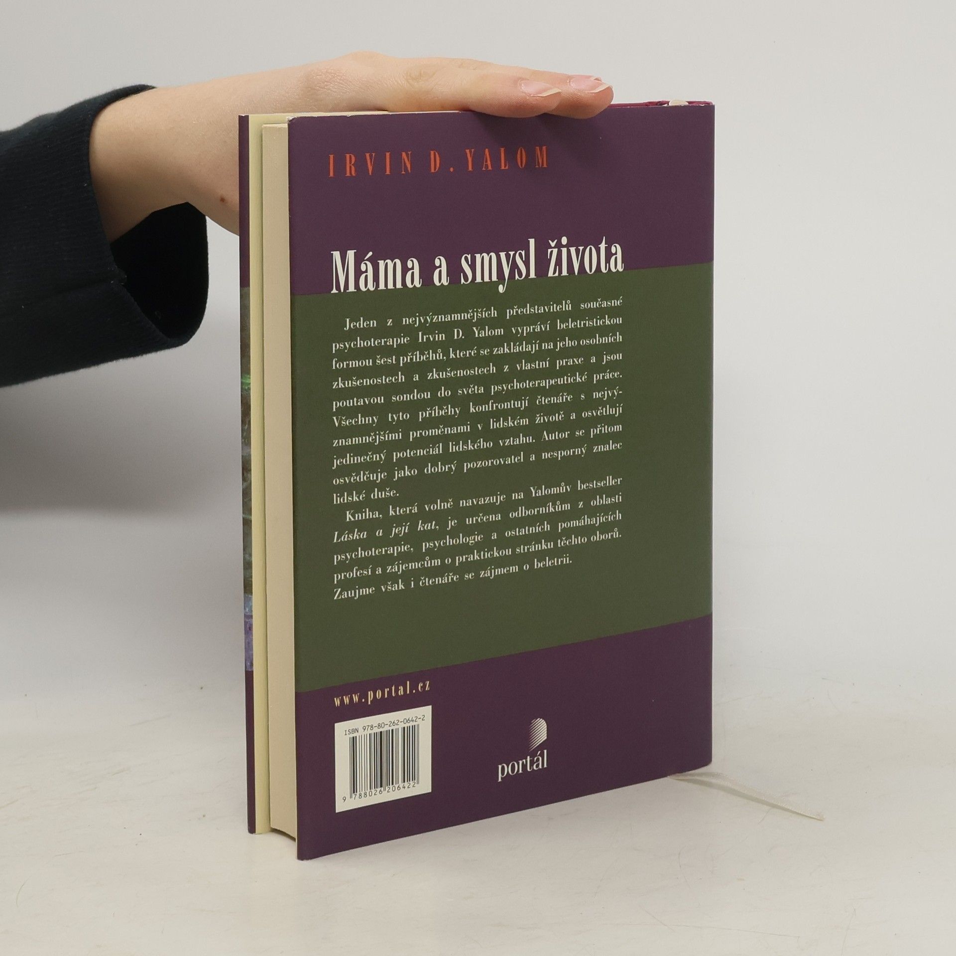 Máma a smysl života je dlouho očekávaným volným pokračováním Yalomova bestselleru Láska a její kat. V této knize se jeden z nejvýznamnějších současných psychoterapeutů pokusil být současně vypravěčem a učitelem. Tam, kde se tyto dvě role dostaly do sporu a autor musel volit mezi vložením pikantní pedagogické poznámky a udržením dramatického tempa příběhu, téměř vždy dává přednost příběhu a své pedagogické poslání se pokouší naplnit nepřímo. V šesti příbězích - jednom vlastním Máma a smysl života a pěti příbězích svých klientů Výlety s Paulou, Jižní útěcha, Sedm lekcí v terapii zármutku pro pokročilé, Dvojitá expozice, Prokletí maďarské kočky - se pokouší setřít hranice mezi beletrií a odbornými publikacemi. Přibližuje svěžím jazykem existenciální terapeutické přístupy, dynamiku zármutku ze ztráty blízké osoby, nastiňuje i problémy vyplývající ze vztahu mezi klientem a terapeutem, zvažuje míru upřímnosti, důvěrnost informací o pacientech, průhlednost terapeuta aj. Kniha zaujme odborníky pomáhajících profesí i zájemce o témata z oblasti psychoterapie a psychologie.