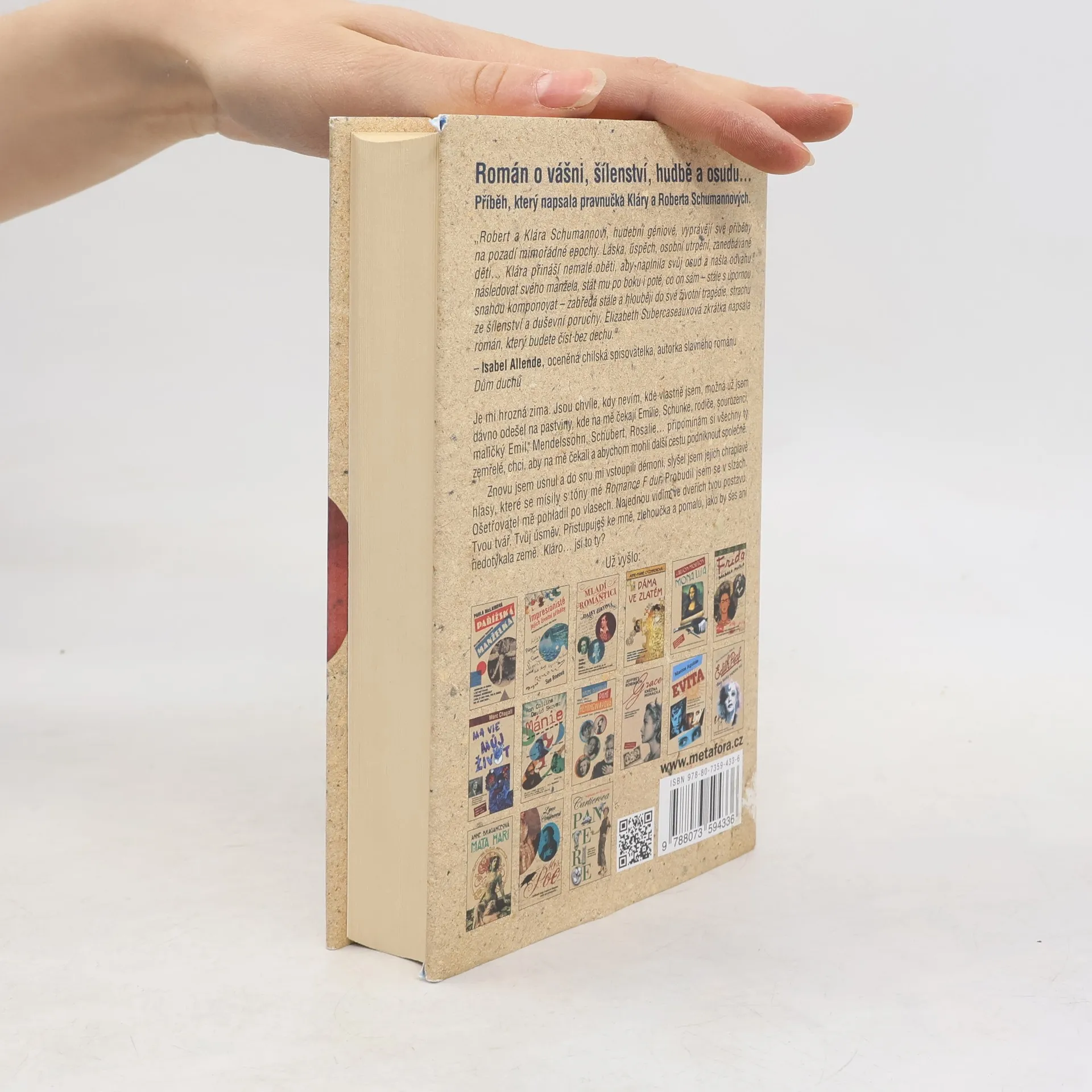 Pozoruhodný vztah a životní osudy dvou geniálních osobností 19. století, skladatele Roberta Schumanna a vynikající klavíristky Clary Wickové-Schumannové, zpracovala do podoby románového příběhu jejich pravnučka, která je známou autorkou a novinářkou.